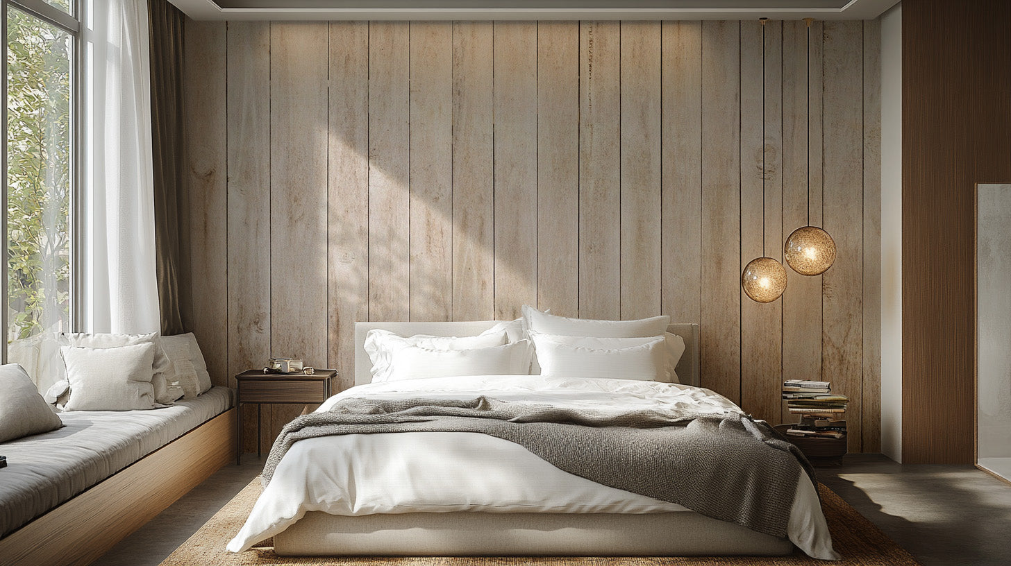 Elegant beige wood panel wallpaper for modern spaces