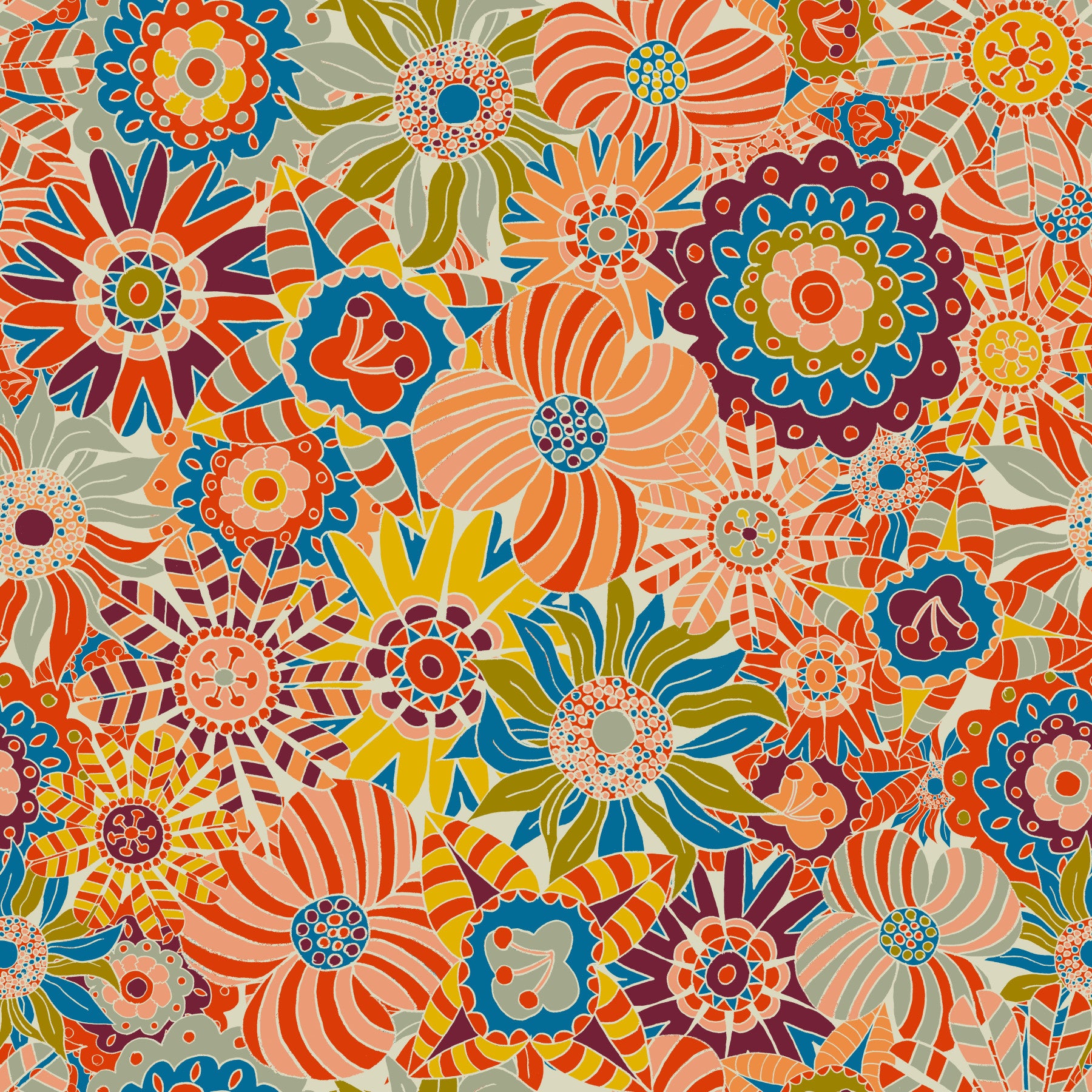 Vivid Colors Scandi Round Flowers Wallpaper.