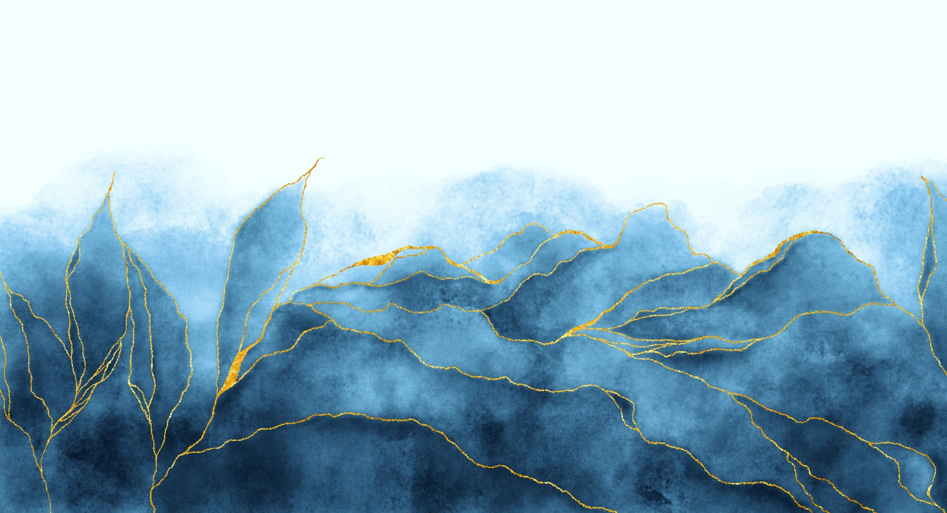 Artistic watercolor wallpaper featuring blue and gold hues.