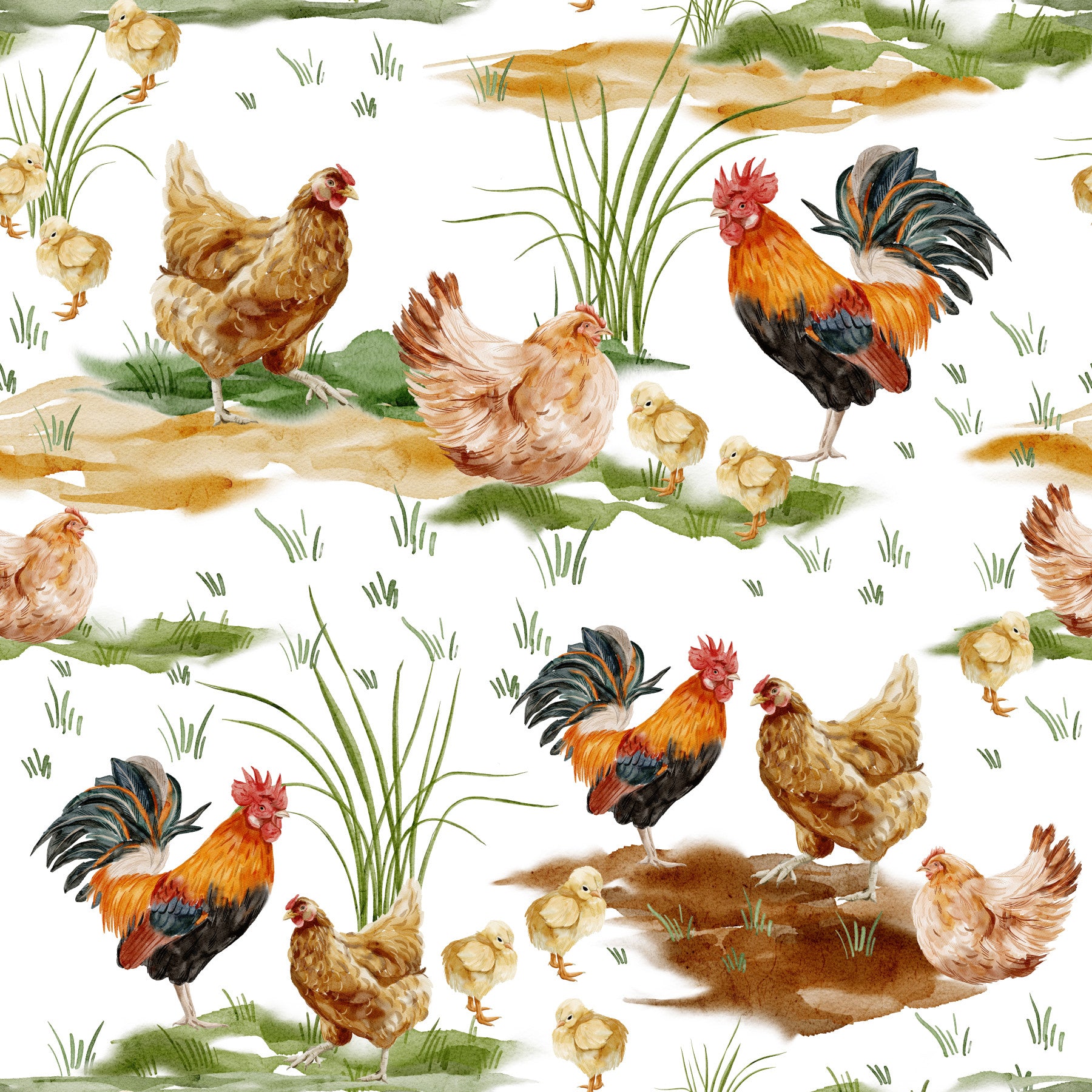 Elegant Watercolor Chicken Coop wall material, exquisite bird depiction.