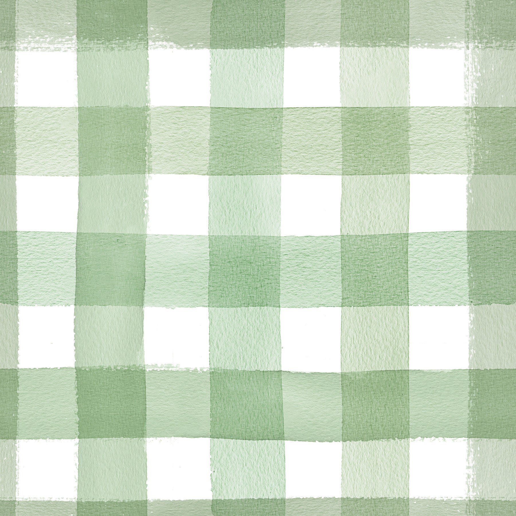 Watercolor wallpaper with relaxed green gingham checks.