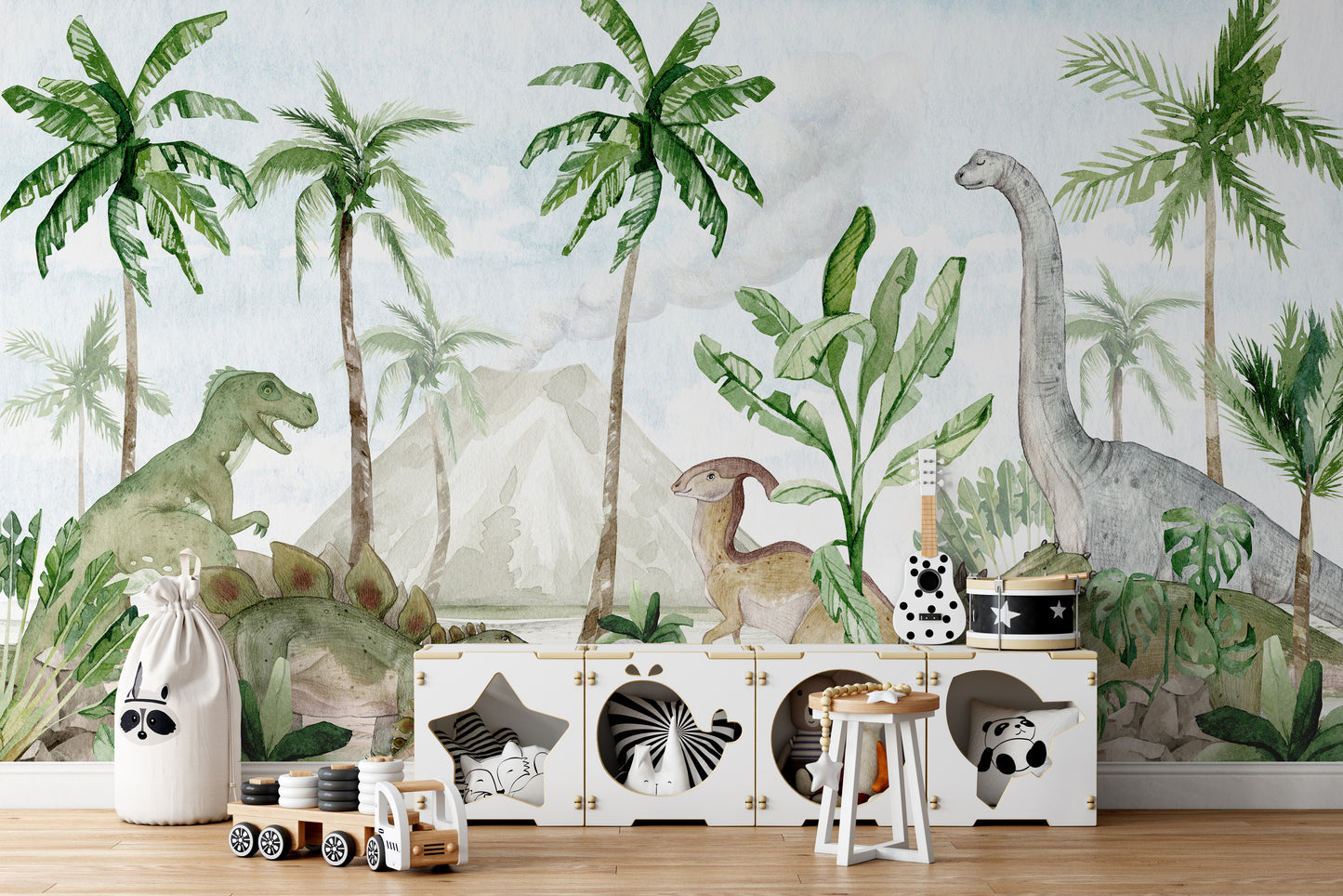 Watercolor Dinosaur Forest Wallpaper - Giffywalls