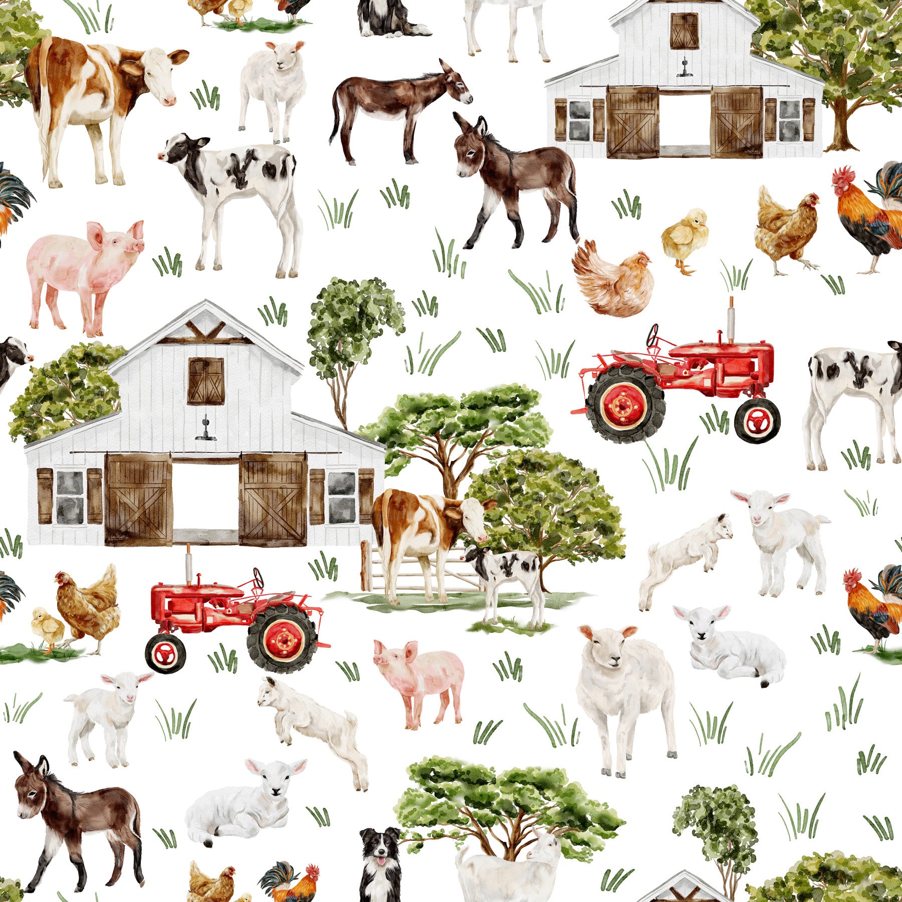 Rustic Watercolor Farm Life wallpaper print baby animal patterns.