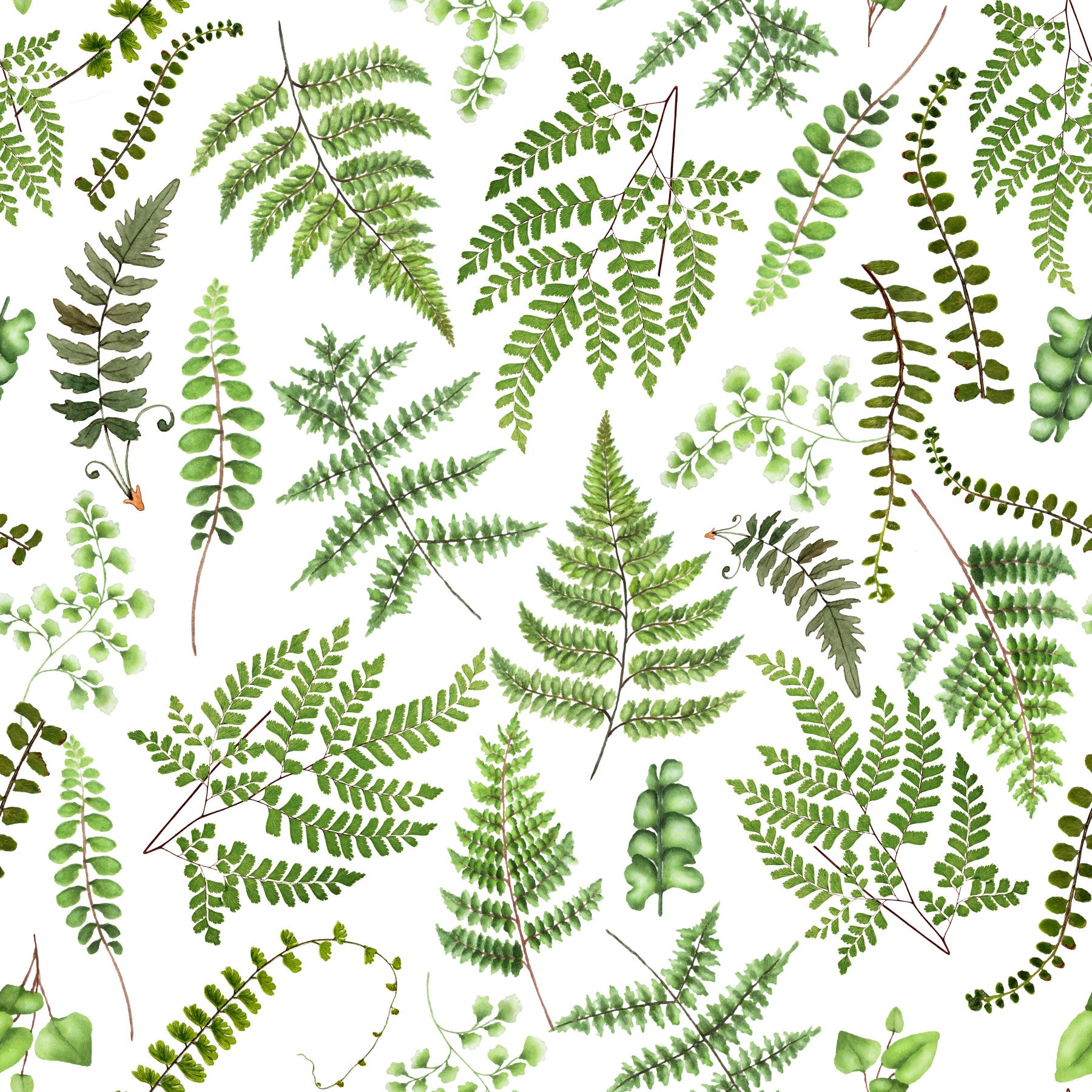 This wallpaper features a delicate arrangement by Uta Naumann of watercolour ferns against a clean backdrop. The artwork employs shades of green to bring a sense of calm and organic appeal to interiors. Use this wallpaper for walls to create a serene bedroom, a soothing living room, or a refreshing bathroom. It will pair well with light wood, natural textures, and earthy colour palettes. It creates a relaxing mood, making it perfect for spaces where you want to relax and unwind.