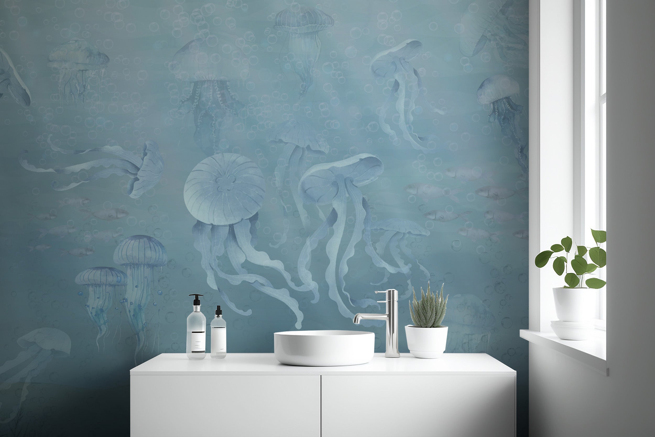Ocean theme jellyfish wallpaper mural with aquatic charm