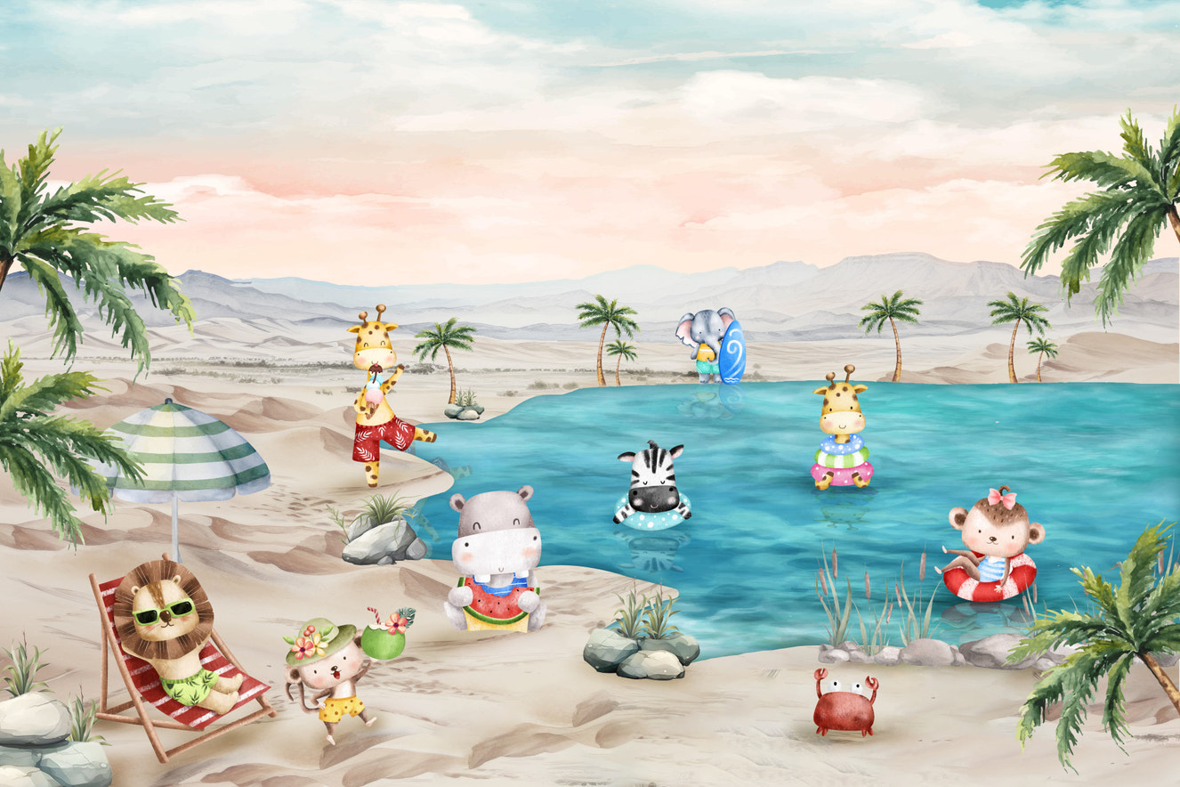 Introduce a splash of nature and whimsy into your child's playroom with our watercolor leaves lion wallpaper. This unique design blends the soft, delicate hues of watercolor leaves with the playful imagery of a lion, creating a perfect balance of serenity and excitement. Ideal for sparking creativity and imagination, this watercolor kids room wallpaper is decorative and a piece of art.