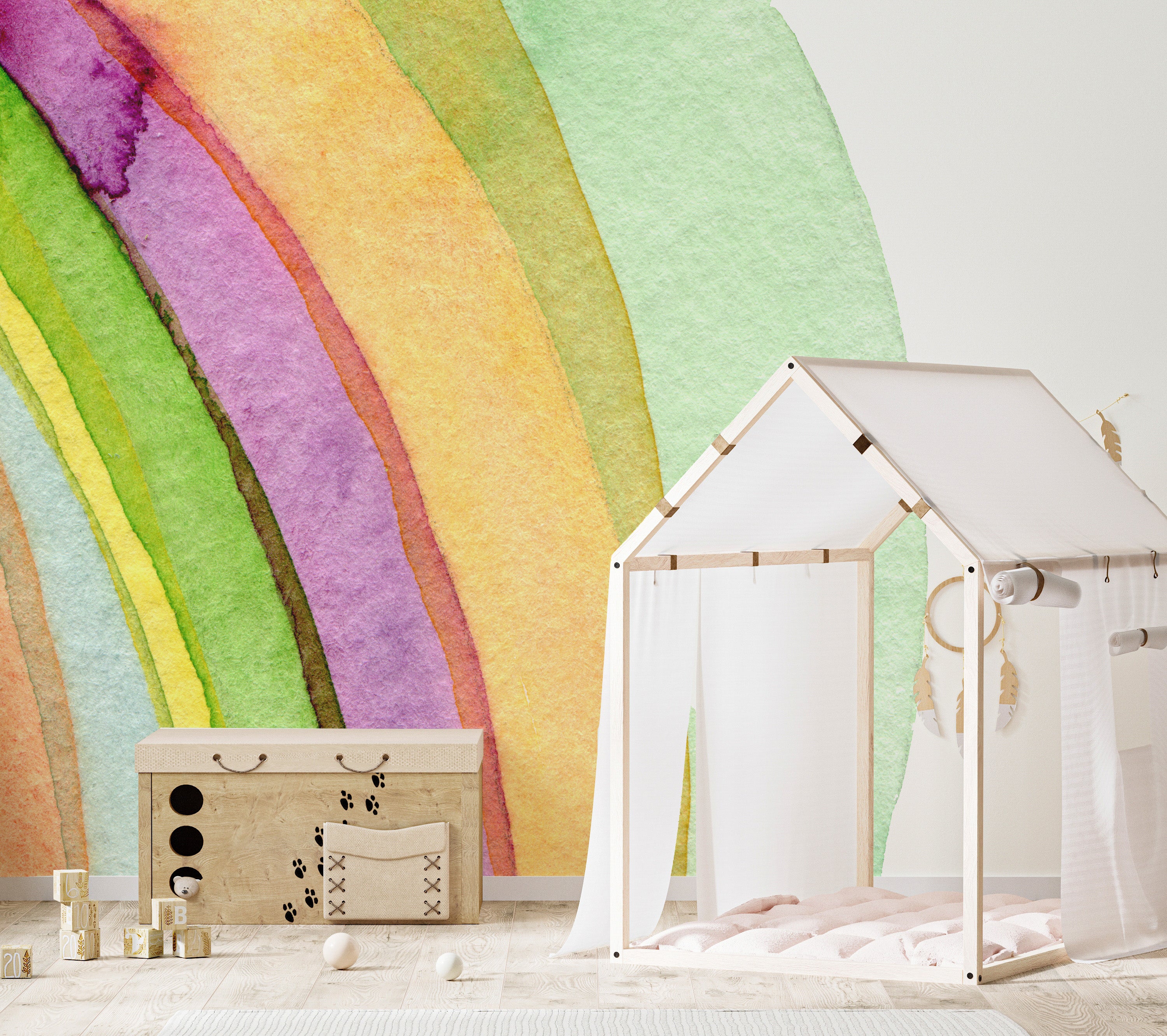 Are you looking to transform your little one’s playroom into a world of colors and whimsy? Look no further than a watercolor rainbow wall mural. With its vibrant hues and fluid lines, a water color wallpaper can set the perfect atmosphere for imaginative play and creativity. Whether your child loves unicorns, rainbows, or anything in between, a rainbow wallpaper will surely be a showstopper in the playroom. So, why settle for plain walls when you can create a space that inspires and excites? Let your child’s imagination soar with a playful and colorful watercolor wallpaper.