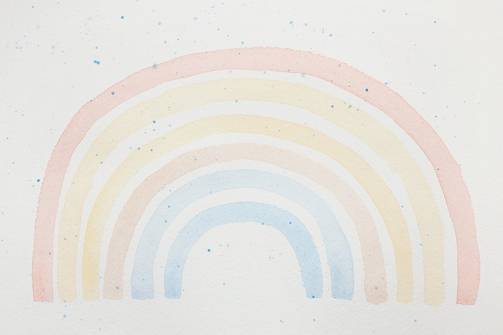 The watercolour rainbow light pastel colours mural wallpaper is a delightful symphony of soft pastel hues, each band of colour gently washed with the tender touch of watercolour. From blush pinks to serene blues and mellow yellow, this artwork brings a playful yet peaceful narrative to any playroom. The subtle splatter of deeper tones adds a whimsical charm, reminiscent of a gentle rain under a soft sky. This watercolour wallpaper is a perfect backdrop for fostering creativity and joy in a space dedicated to play and imagination. It's like a visual lullaby, promising adventures in dreamy landscapes, making it a lovely addition to spaces designed for the young and the young at heart.