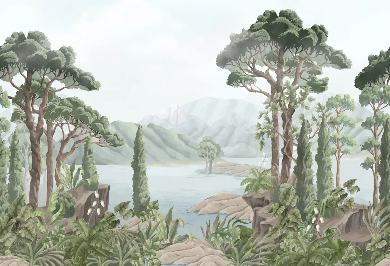 Bring a sense of adventure to your child's room with our watercolor jungle landscape wallpaper. This mural features lush greenery, towering trees, and a serene river, creating a captivating scene that will ignite your child's imagination. The detailed artwork showcases a vibrant jungle teeming with life, perfect for inspiring stories and playtime adventures. Made from high-quality materials, our wallpaper ensures durability and vibrant colors that last for years, providing a lasting impact in your child's space.Order today to bring this enchanting jungle scene into your home. The watercolour effect adds a unique artistic touch, setting it apart from traditional wallpapers.