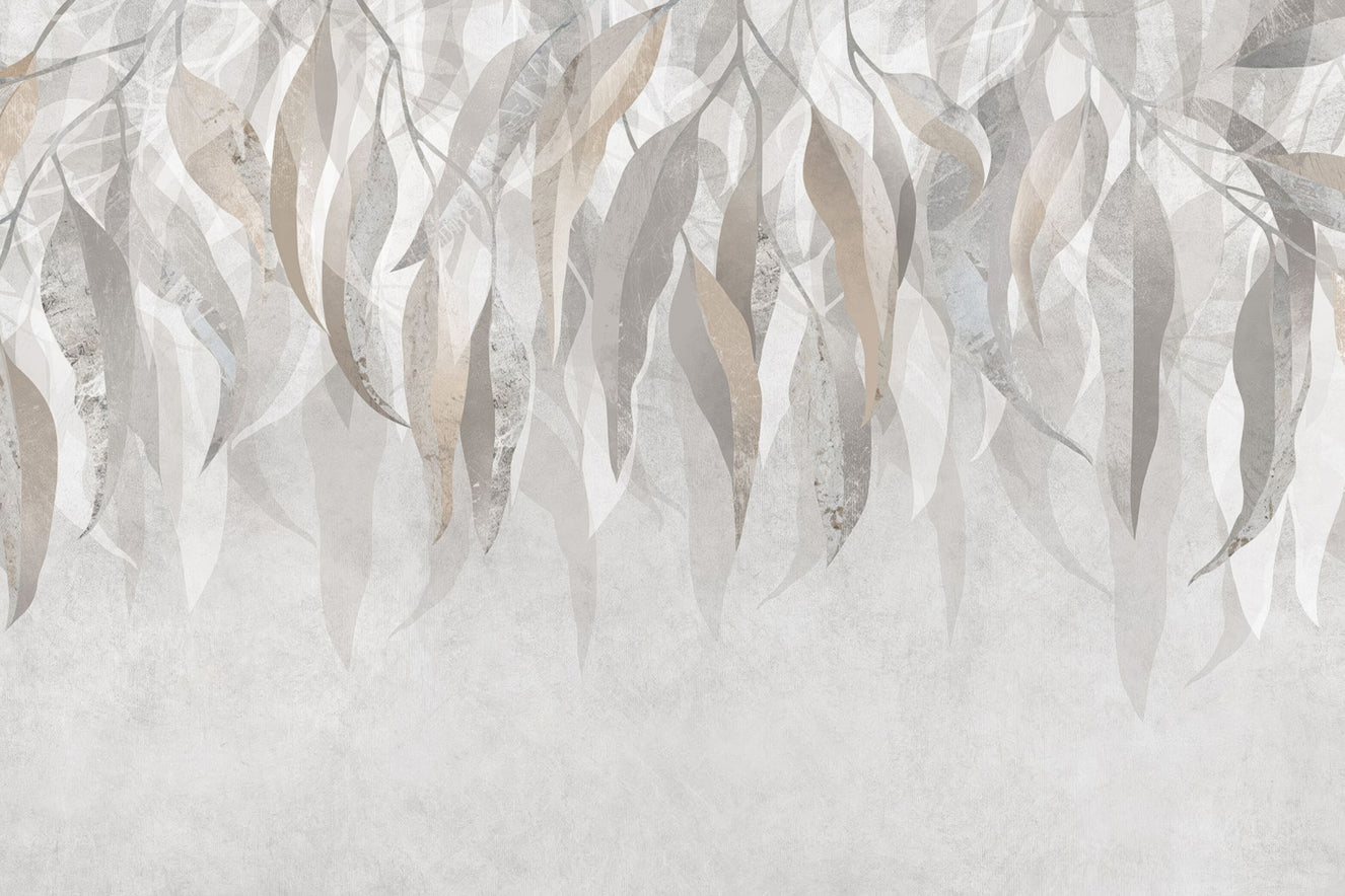 Artistic leaf print wallpaper with gentle flow