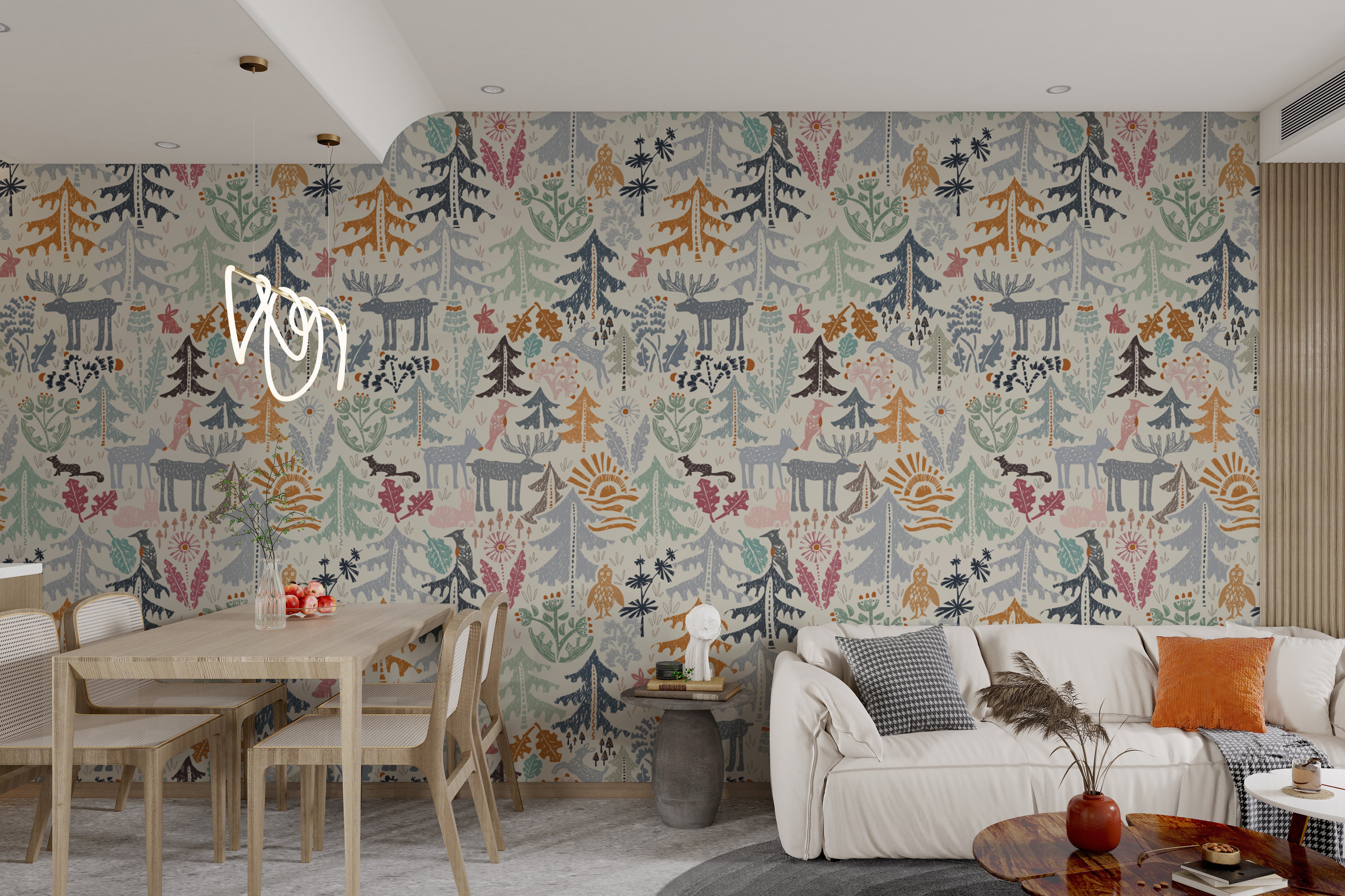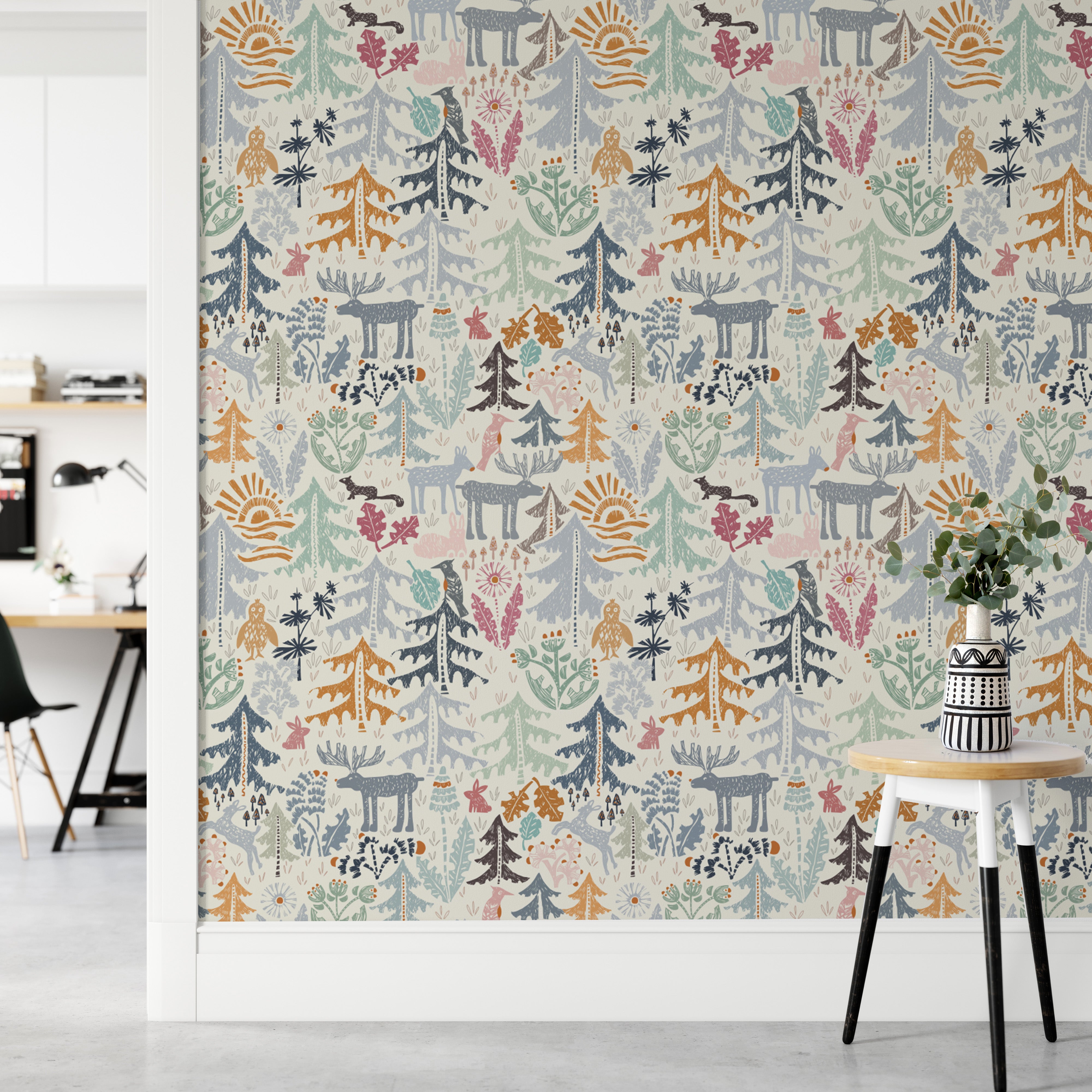 Artistic Woodland Creatures Wallpaper Design
