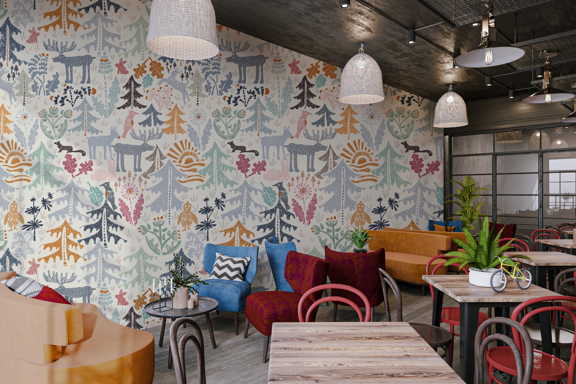 Vibrant Woodland Animals and Forest Wallpaper