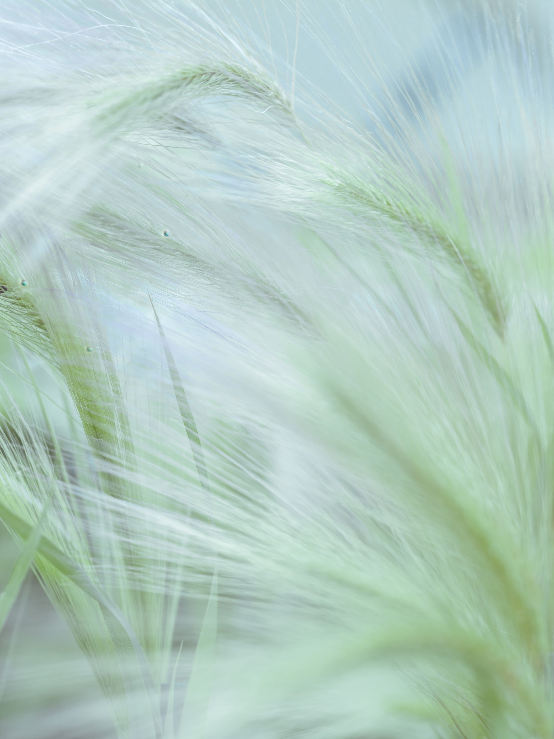 Wild grass Foxtail Barley. Bring serenity to your space with this calming botanical design. Soft green and blue tones evoke a sense of peace. This wallpaper for walls showcases the delicate texture of wild grasses in a modern, abstract style. It's a perfect fit for bedrooms, bathrooms, or living rooms, offering a tranquil backdrop that pairs well with light wood furniture and minimalist decor. Let this design transform your home into a haven of calm.