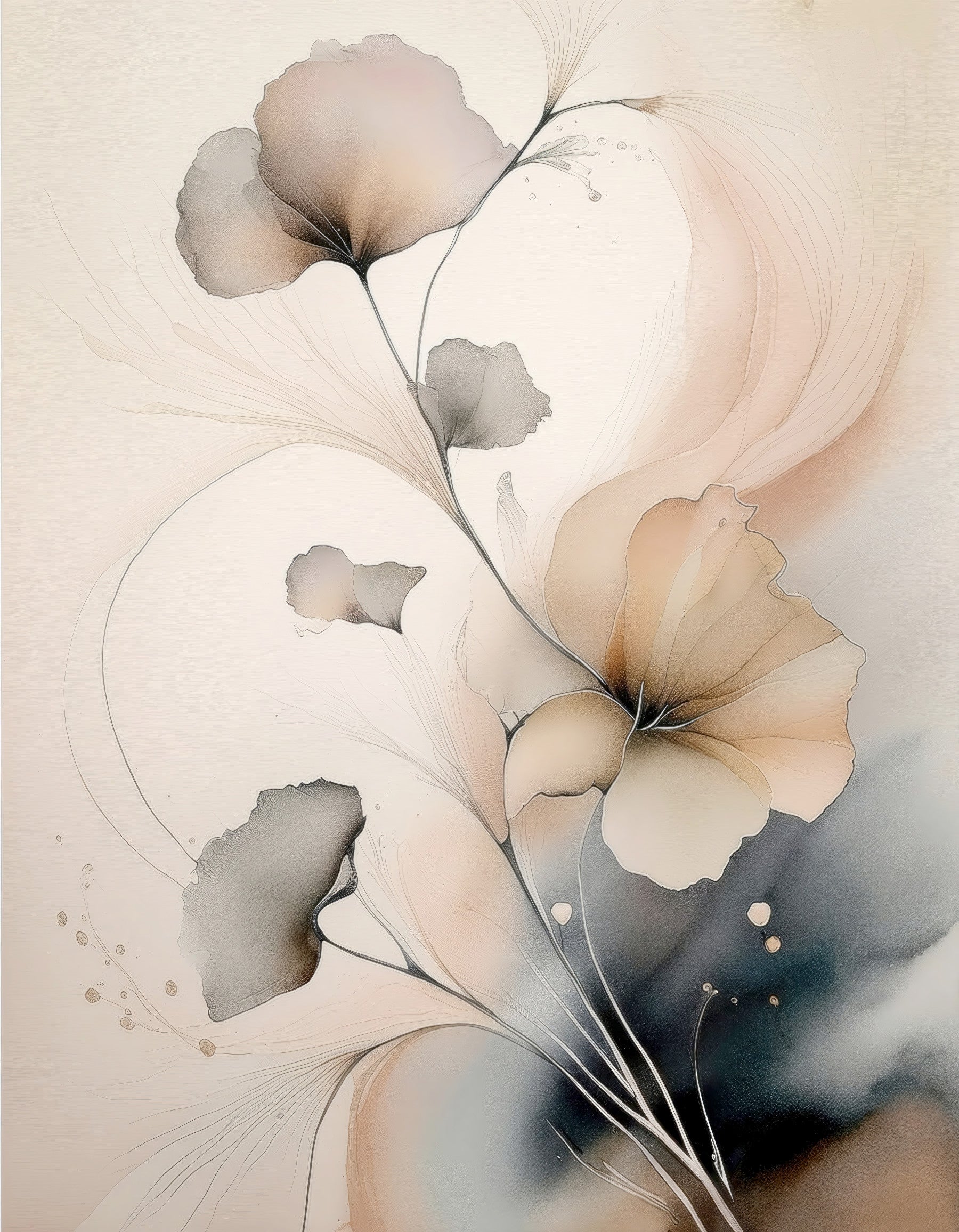 Invite nature's subtlety into your space with this dreamy floral design. Soft washes of beige and grey conjure a serene atmosphere, perfect for bedrooms or living areas. Delicate lines suggest movement, adding a touch of whimsy. This wallpaper for walls presents an airy elegance, blending seamlessly with modern, Scandinavian, or classic interiors. Introduce calm and grace to your home.
