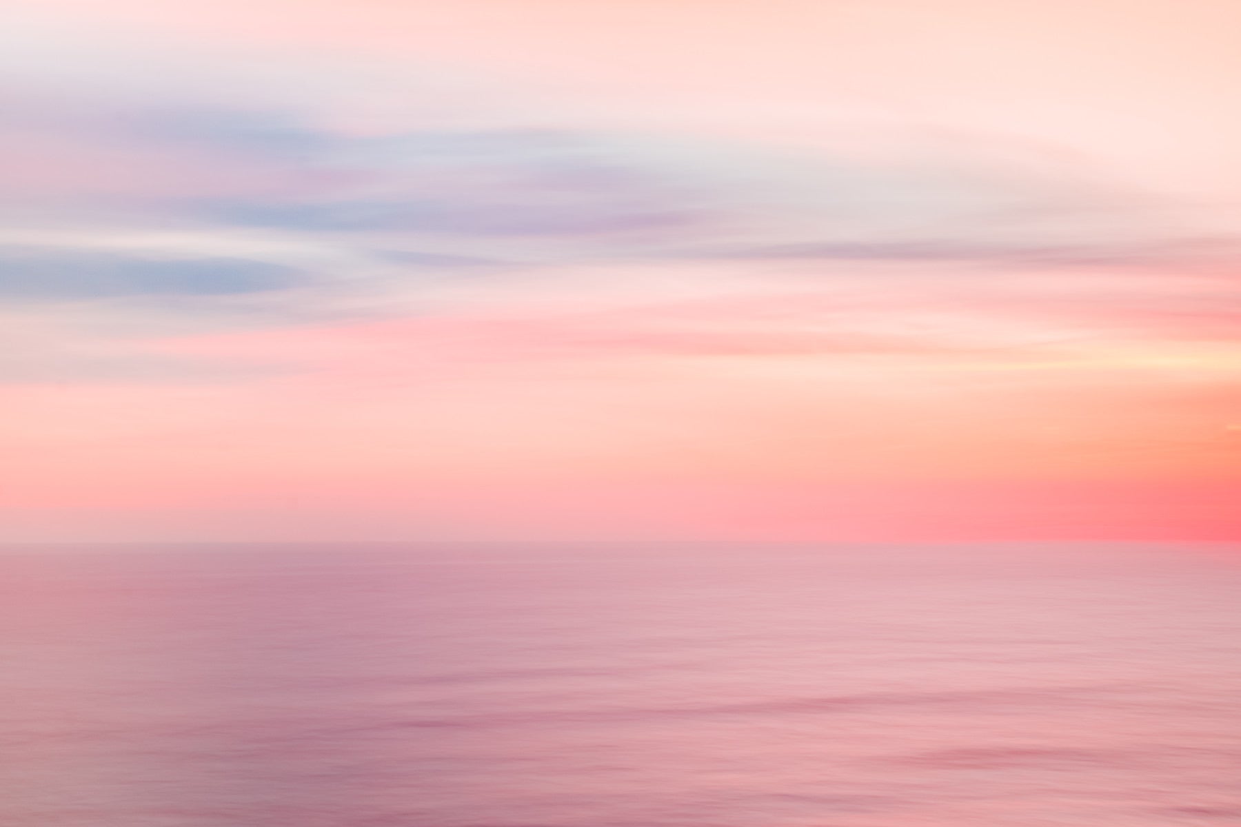 Let the serene beauty of this wallpaper wash over you. A pastel spectrum unfolds, blending the gentle hues of the setting sun with a tranquil ocean. This calming imagery is expertly captured to evoke a mood of peace and reflection. The dreamy quality of the blurred seascape offers a modern, artistic flair, perfect for creating a soothing atmosphere in any space. Transform your home with the soft and captivating beauty of nature's canvas.