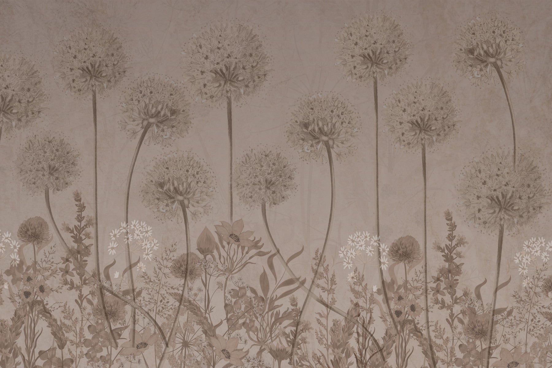 Transform your space with this calming wallpaper for walls, showcasing a gentle illustration of dandelions and wildflowers in soft, neutral shades. The design features flowing lines and a monochromatic palette that enhances the botanical theme. Consider this selection for bedrooms, living rooms, or hallways. The understated pattern creates a peaceful ambiance that elevates your home decor effortlessly. It blends with many designs from modern to farmhouse, bringing a refined and organic feel.