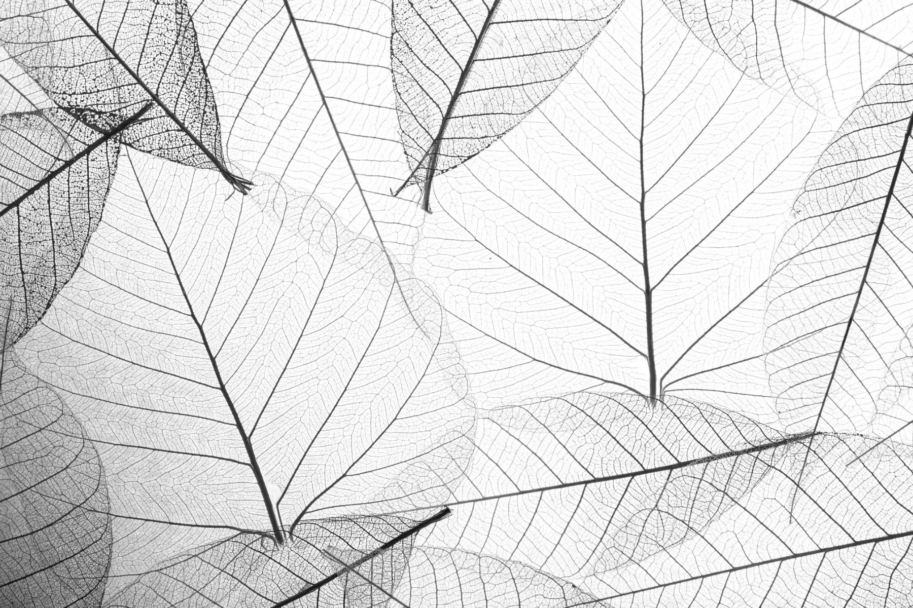 Black & White Large Veins Leaves Wallpaper Mural - Giffywalls