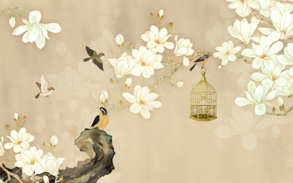 Breathtaking and timeless, a magnolia flowers branch birds mural wallpaper is the ultimate statement piece that can transform your living room into a serene oasis. This elegant flower wallpaper with its intricate design and vibrant colors will breathe new life into your space, creating a haven of relaxation and peace. The delicate birds soaring amid the branches will add an extra layer of magic to your decor, filling your home with a sense of joy and wonder. You will love the way this mural wallpaper catches the light, radiating warmth and beauty to every corner of your room. Indulge in this magnificent masterpiece and elevate your living room to a whole new level of elegance and sophistication.