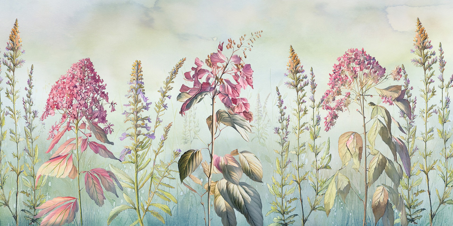 Refresh your walls with beautiful wild flowers meadows blue wallpaper.