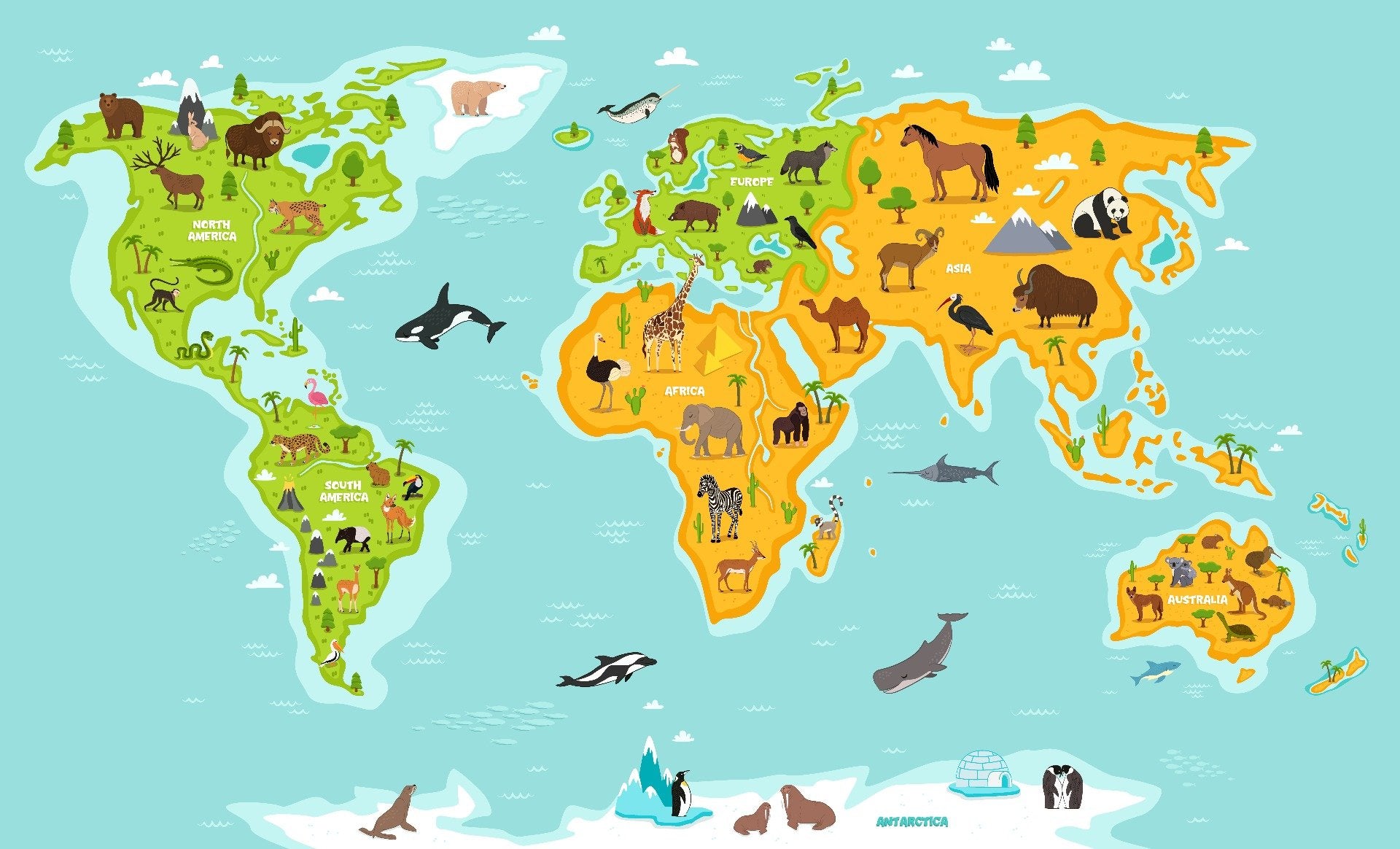 Wildlife Animals World Map Wallpaper - Giffywalls