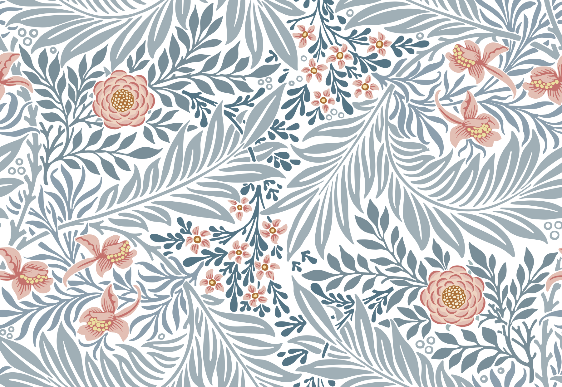 William Morris’s Larkspur is a quintessential Arts and Crafts pattern: rhythmic sprigs of larkspur and curling foliage arranged in a refined, small repeat. Created for Morris & Co in the Victorian era, it blends botanical accuracy with hand-crafted warmth, ideal for wallpaper, fabric, upholstery and curtains. Think heritage English country house, Pre-Raphaelite romance, timeless cottagecore. Keywords: William Morris, Larkspur, Arts and Crafts, Victorian, botanical, floral, wallpaper, textile, home decor, classic, block print, indigo, sage, blue, cream, surface pattern, ornamental repeat ivy.