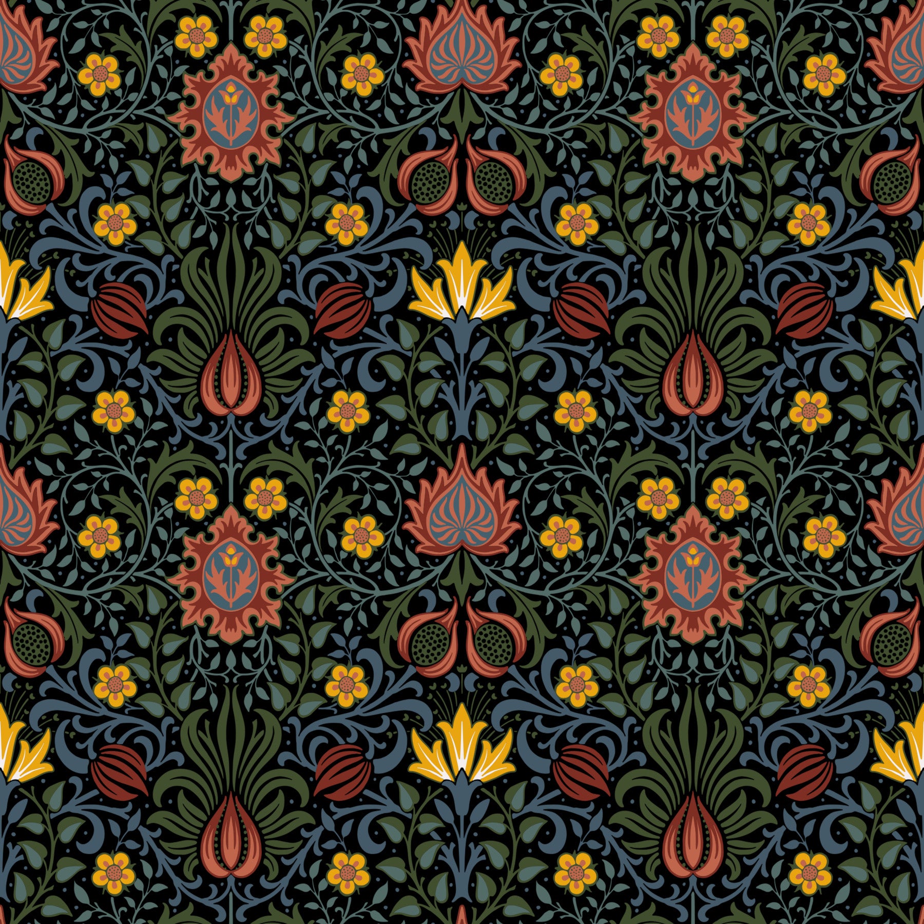 William Morris’s Persian is a richly detailed Arts and Crafts pattern inspired by oriental textiles and Islamic ornament. Designed for Morris & Co, it features scrolling foliage, stylized blossoms, and intricate symmetry, echoing Persian carpets and Victorian fascination with exotic craftsmanship. Ideal for wallpaper, fabric, upholstery, and curtains, it brings heritage charm to interiors. Keywords: William Morris, Persian, Arts and Crafts, Victorian, floral, botanical, ornamental, textile, wallpaper, surface pattern, historic, decorative, repeat, heritage, Morris & Co, timeless, classic home decor.