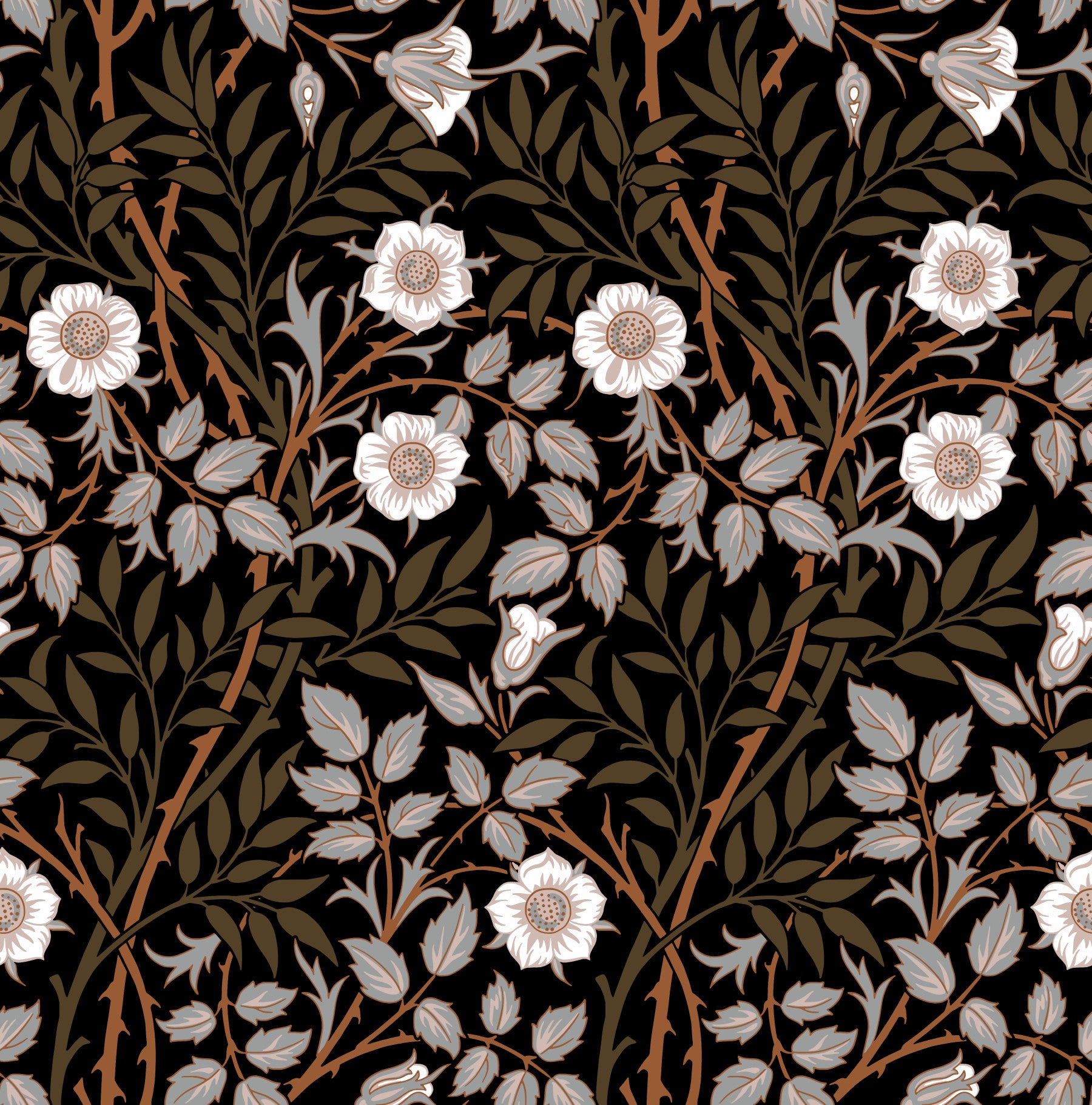 William Morris Sweet Briar Dark Brown Wallpaper⁠