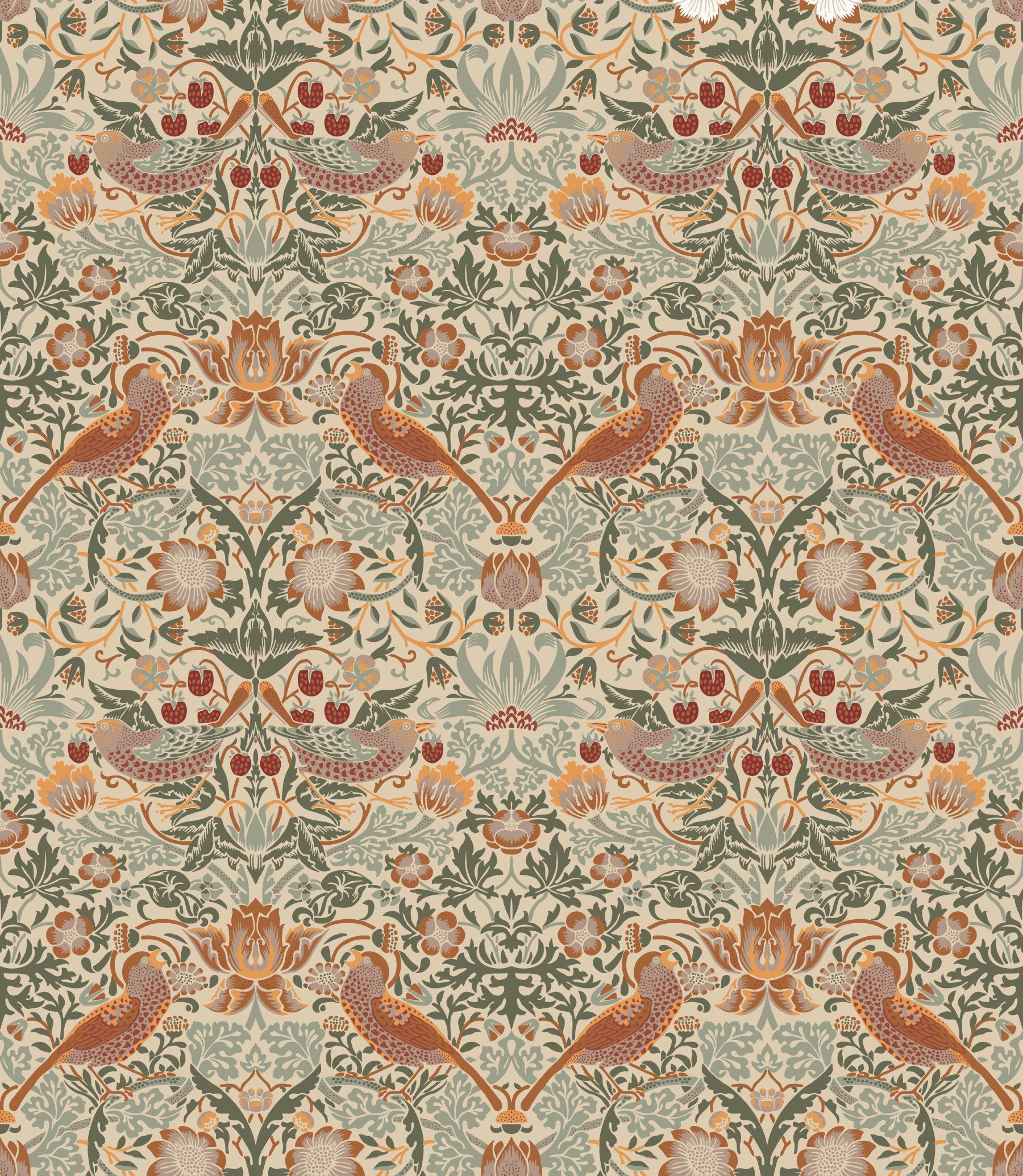 William Morris - The Strawberry Thief Sand Wallpaper⁠