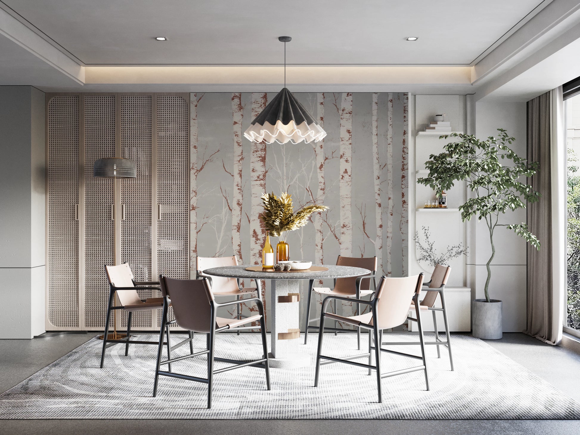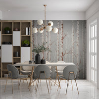 Embrace the serene stillness of winter with 'Winter Birch Beauty,' a wallcovering that evokes the quiet elegance of a snow-dusted forest. A symphony of slender birch trees rises from a subtle, textured background, their stark white bark accented by rustic brown markings that hint at the warmth beneath the winter chill. Delicate branches reach skyward, creating a sense of height and spaciousness, drawing the eye upward. The neutral palette ensures effortless integration into any room, while the artistic rendering lends a sophisticated touch. Transform your living space into a peaceful sanctuary, a haven of natural beauty where tranquility reigns. Let the calming presence of 'Winter Birch Beauty' infuse your walls with the enchanting allure of a winter landscape.