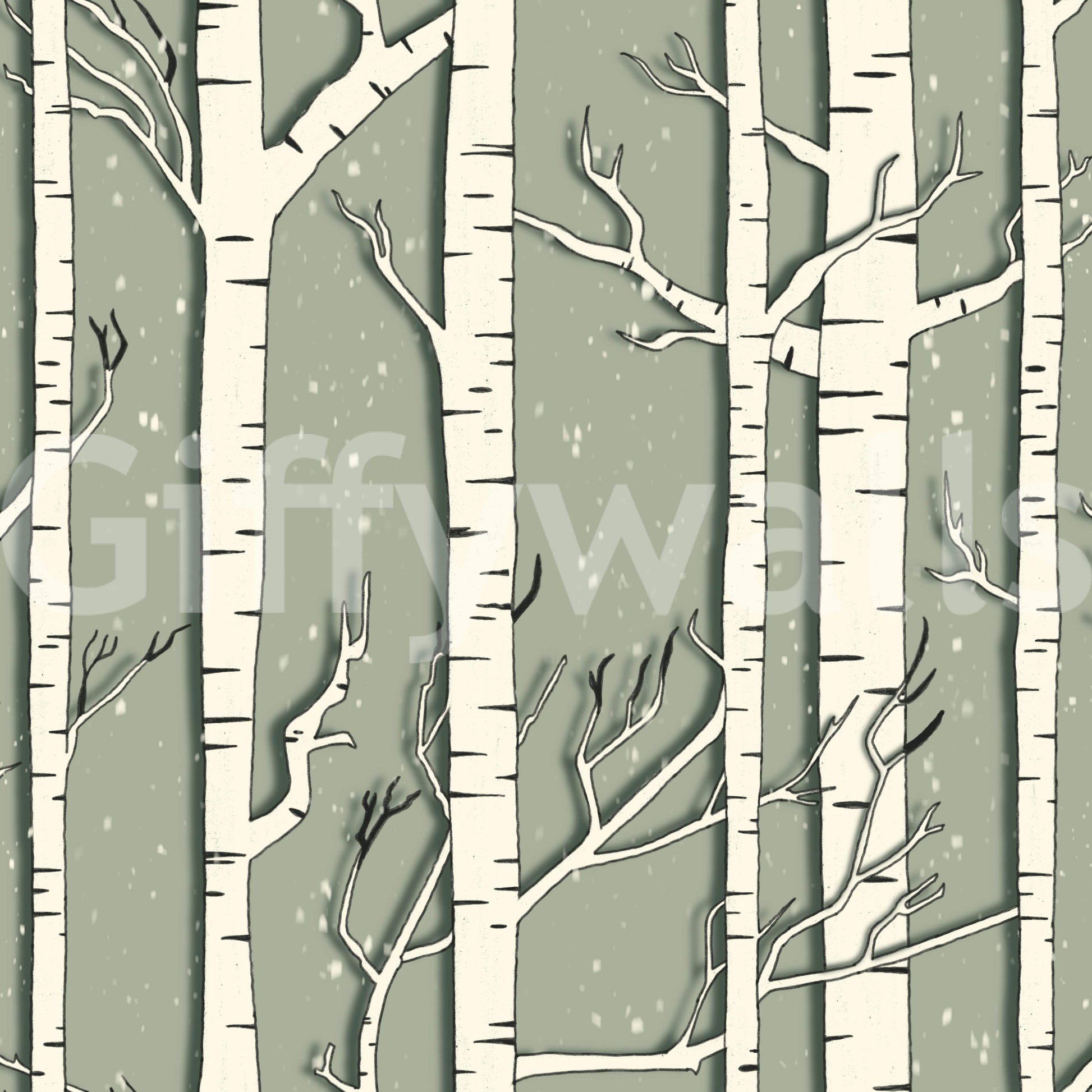 Bring the tranquility of a snow-kissed forest into your home with this engaging design. The birch trees, rendered in gentle hues, create a soothing backdrop. This wallpaper for walls evokes a sense of calm and serenity. The muted green complements the off-white of the birch, making it a restful design choice. It works wonderfully in bedrooms, nurseries, or even a cosy living room, blending easily with modern or rustic interiors. The subtle snowfall adds to the dreamlike feel.