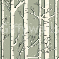 Winter forest wall covering with whispering birch trees for bedrooms or living rooms.