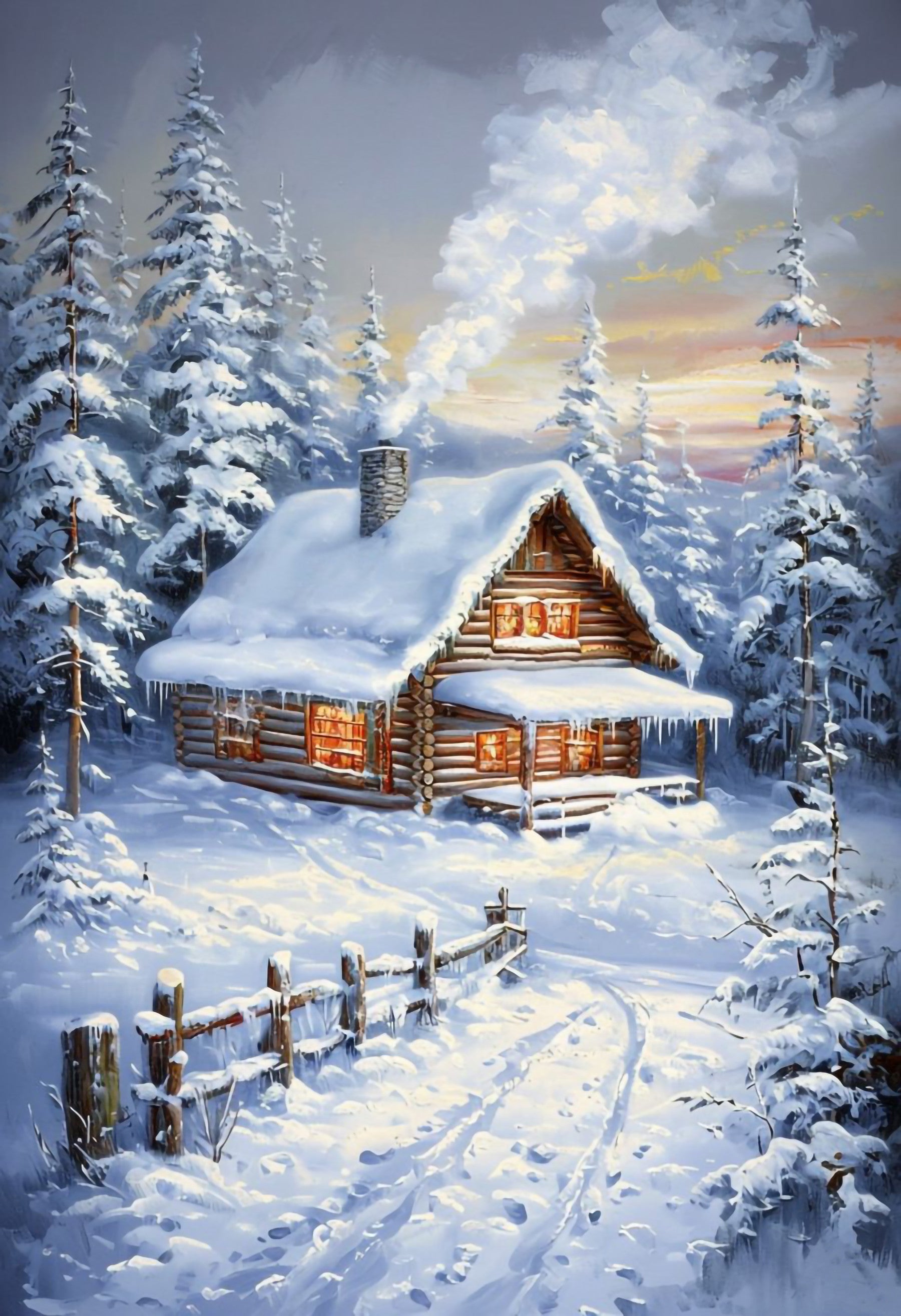 Transform your space into a serene winter wonderland with this charming log cabin scene. The design features a cosy cabin nestled amongst snow-laden pine trees, evoking a sense of warmth and tranquillity. A soft, muted colour palette of blues, whites, and browns adds a peaceful touch to any room. This wallpaper for walls works well in living rooms, bedrooms, or even a home office, creating a calming retreat from the hustle and bustle of everyday life. The detailed brushstrokes and realistic depiction of the winter landscape create a sense of depth, enhancing the visual appeal of your interior.