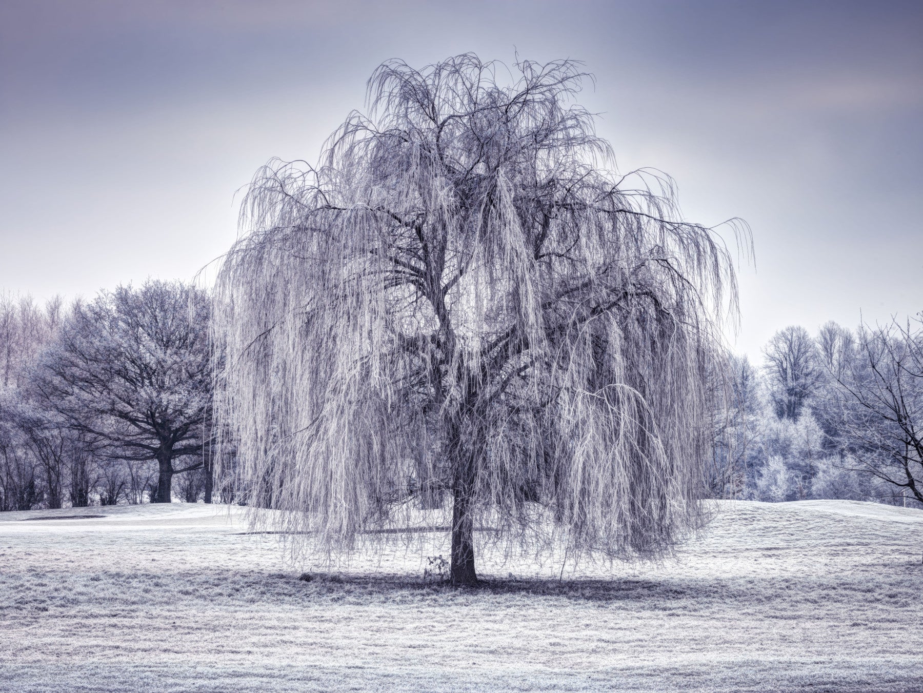 Chillingly beautiful Weeping Tree photo mural, peaceful winter.