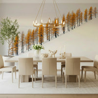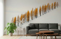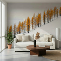 Bring the quiet beauty of winter into your home. This wallpaper features a row of trees, their leaves turned to gold against a backdrop of fresh snow. The scene inspires a sense of stillness and wonder. Use this wallpaper for walls to make a statement. It works well in a modern living room, a rustic bedroom, or even a bright dining room. The contrast between gold and white adds sophistication while creating a relaxing vibe. Its clean lines complement minimalist or contemporary interior designs.