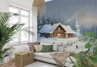 Bring the beauty of winter indoors with this serene wallpaper. A snug log cabin surrounded by snow-kissed trees welcomes you with its warm, inviting light. Gentle blues and whites dominate, offering a calm backdrop to the golden hues glowing from within. This wallpaper for walls adds a cosy touch to any living space, perfect for creating a peaceful reading nook or a calming bedroom environment. Imagine the warmth and serenity this scene brings to your home, evoking a sense of comfort and relaxation.