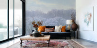 Bring a breath of fresh air into your home. This wallpaper for walls showcases a forest shrouded in mist. A light dusting of snow glistens on the trees. Soft, neutral hues create a relaxing vibe, perfect for bedrooms, living areas, or a calm home office. The delicate scene adds a touch of organic beauty. This wallpaper complements minimalist décor or natural colour schemes. The muted tones and subtle texture enhance rooms creating a cosy and inviting atmosphere.