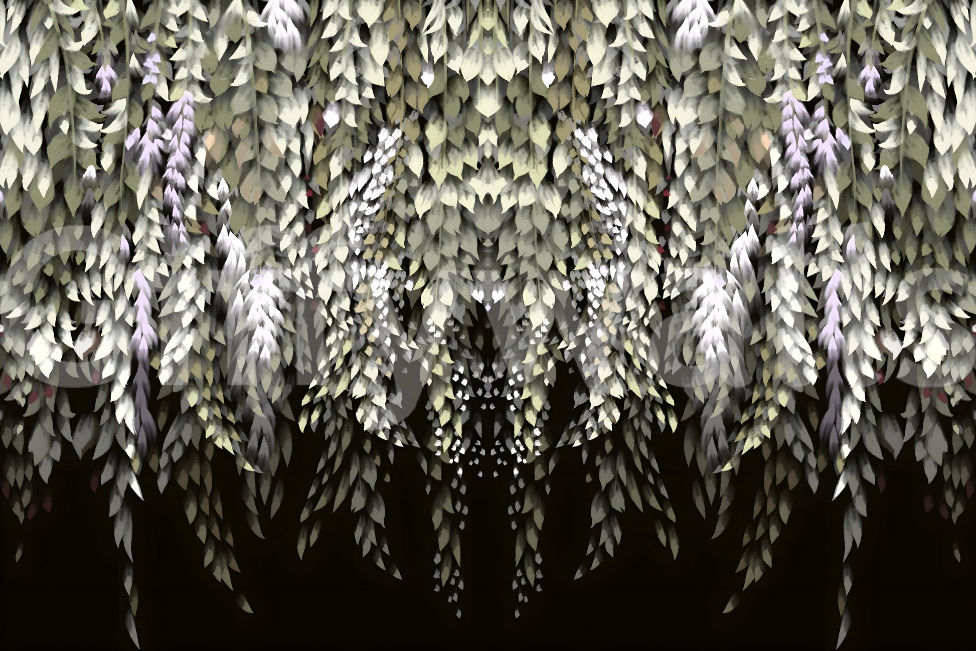 Transform your home with this dreamy wisteria-inspired wallpaper for walls. The delicate, cascading design features soft greens, whites, and subtle purples against a dark background. It creates a calming, nature-inspired atmosphere. This artful design works wonderfully in bedrooms, living rooms, or even a hallway, adding a touch of quiet sophistication. The repeating pattern gives an organic feel. The dark backdrop will add contrast to any room, while the leaf motif will add depth.