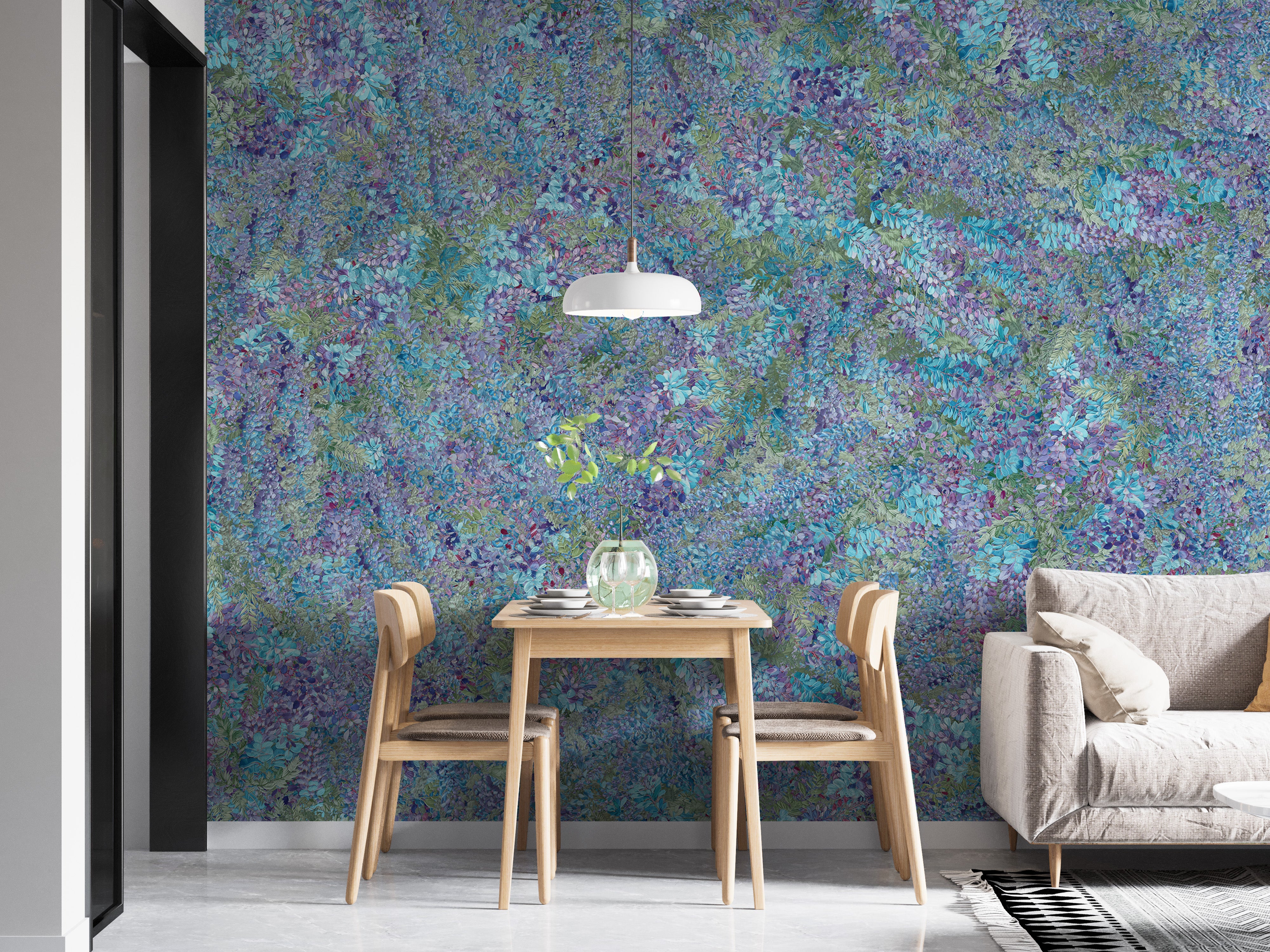 Wisteria green and purple wallpaper murals for living room
