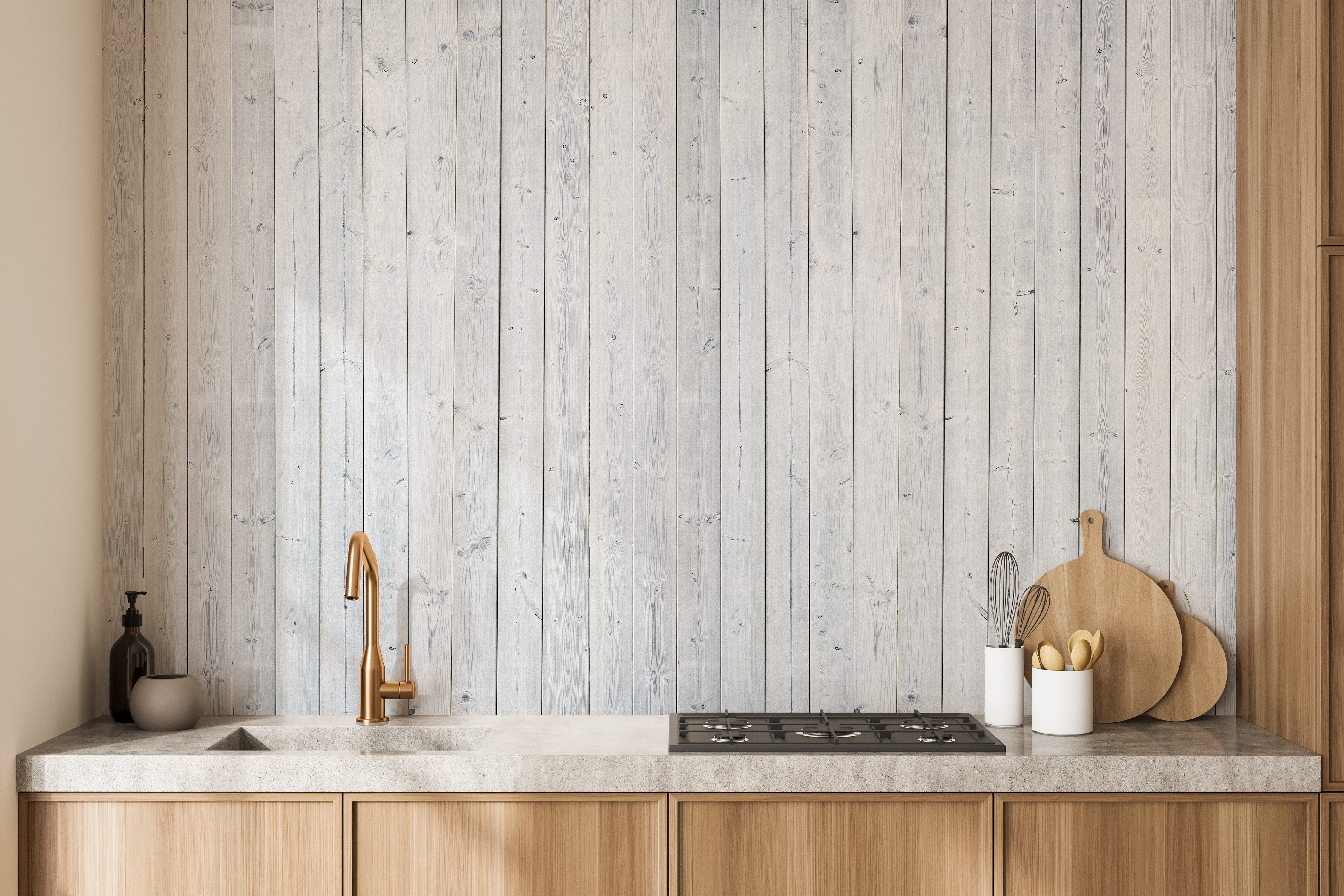 Decorative wood-inspired wallpaper look