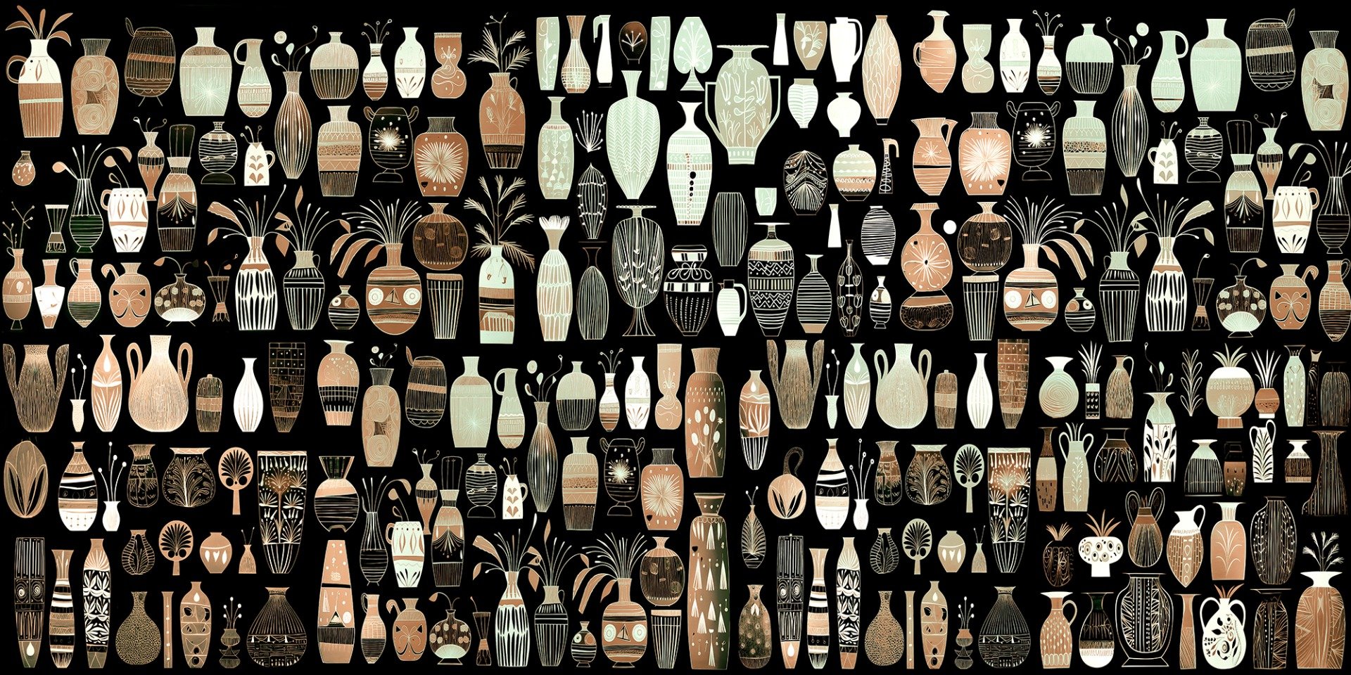 Artistic woodcut vase wallpaper murals for stylish decor.