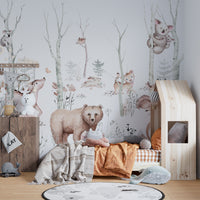 Scenic watercolor woodland animal wallpaper mural