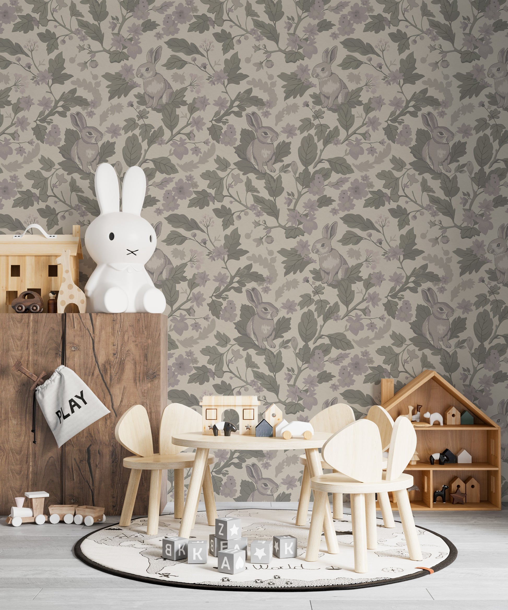 Create a dreamy and serene space with our Woodland Garden Wallpaper from Kids Dream Walls – now in the enchanting Dusty Lavender colorway. This hand-drawn design features gentle rabbits nestled among delicate florals and leafy branches, bringing a sense of calm and whimsy to your interior. The soothing palette of dusty lilac, soft purple, and muted lavender tones adds a gentle charm that’s perfect for nurseries, toddler rooms, or any space inspired by nature and imagination. The timeless woodland theme encourages creativity and tranquility, making it ideal for creating a peaceful, storybook-like environment where little ones can feel safe, inspired, and at home.