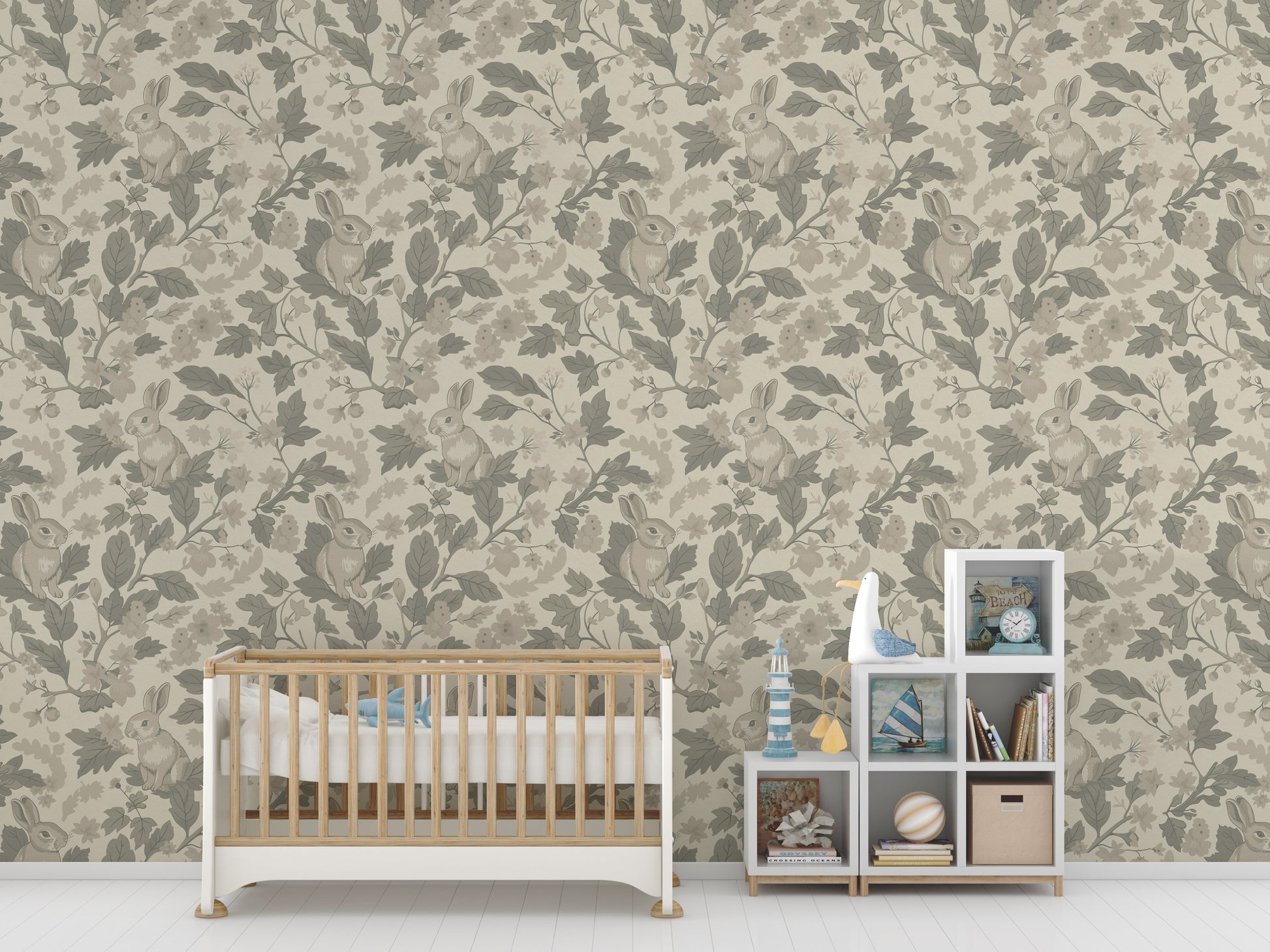 Create a calm and dreamy atmosphere with our Woodland Garden Wallpaper from Kids Dream Walls – now available in the Natural Beige colorway. This hand-drawn design features gentle rabbits nestled among delicate florals and winding branches, evoking a serene connection to nature. The earthy palette of warm beige tones, soft greens, and light natural hues brings a cozy and timeless feel to any space. The classic woodland setting sparks imagination and offers a sense of comfort and tranquility – ideal for nurseries, playrooms, or nature-inspired interiors where little ones can feel safe, curious, and inspired.