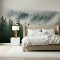 Create a tranquil haven with this sophisticated wallpaper for walls, featuring a lush forest immersed in a soft, hazy mist. The blend of deep greens and pale greys adds depth and serenity to any interior. Ideal for bedrooms, living rooms, or study areas, this design promotes relaxation and complements a wide range of decorative styles. It is designed to bring the soothing qualities of nature indoors, fostering a calm and serene atmosphere in your home. It makes for an immersive backdrop that elevates the feeling of tranquility in your interior spaces.