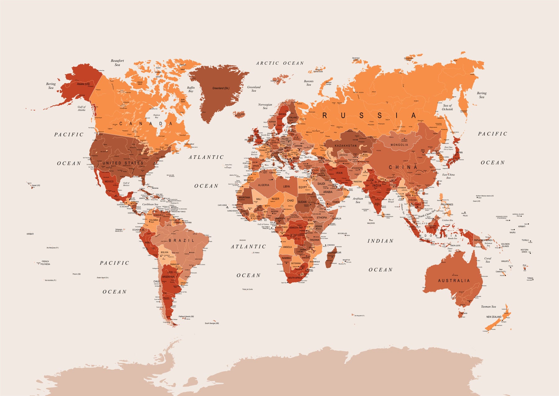 World Map Burnt Orange Wall Mural