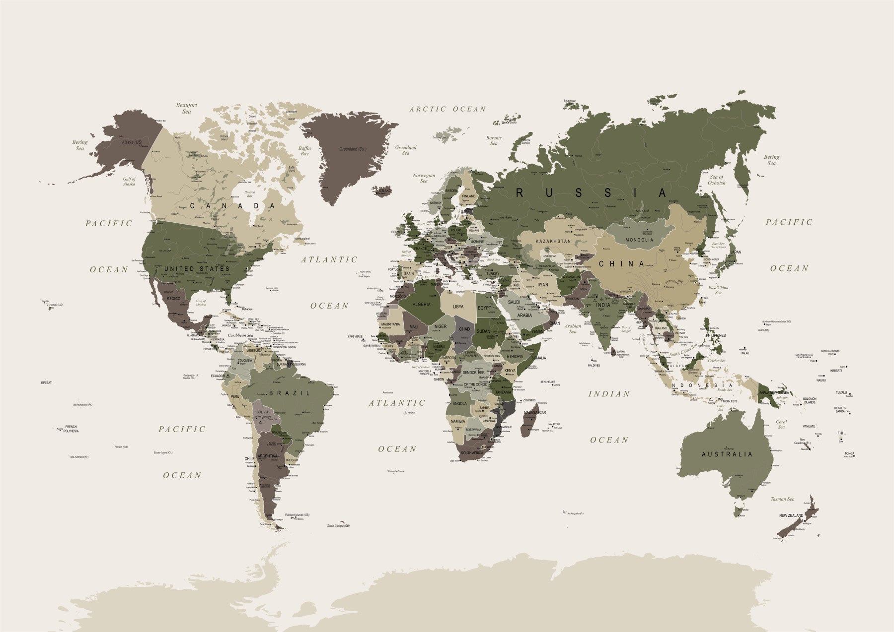 Bring the world to your walls with this unique global map. The olive green color palette creates a calm and inviting atmosphere suitable for any room. Showcasing precise cartography, the design serves as a stylish and educational focal point. Use this wallpaper for walls to instantly elevate your living room or home office. It complements various interior styles, making it an excellent choice for modern homes, studies, and creative spaces. Add depth and character to your walls with this timeless design.