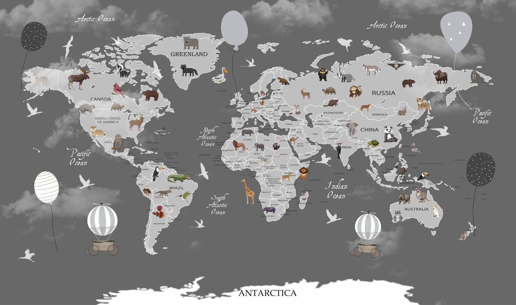 Embark on a global adventure right from the comfort of your child's room with our World Map Kids Room Wallpaper. This vibrant and educational peel and stick wallpaper is a treasure trove of exploration, showcasing a colorful world map teeming with adorable animals representing each continent. It's not just decor; it's a launchpad for curiosity and learning about diverse cultures and the wonders of our planet.