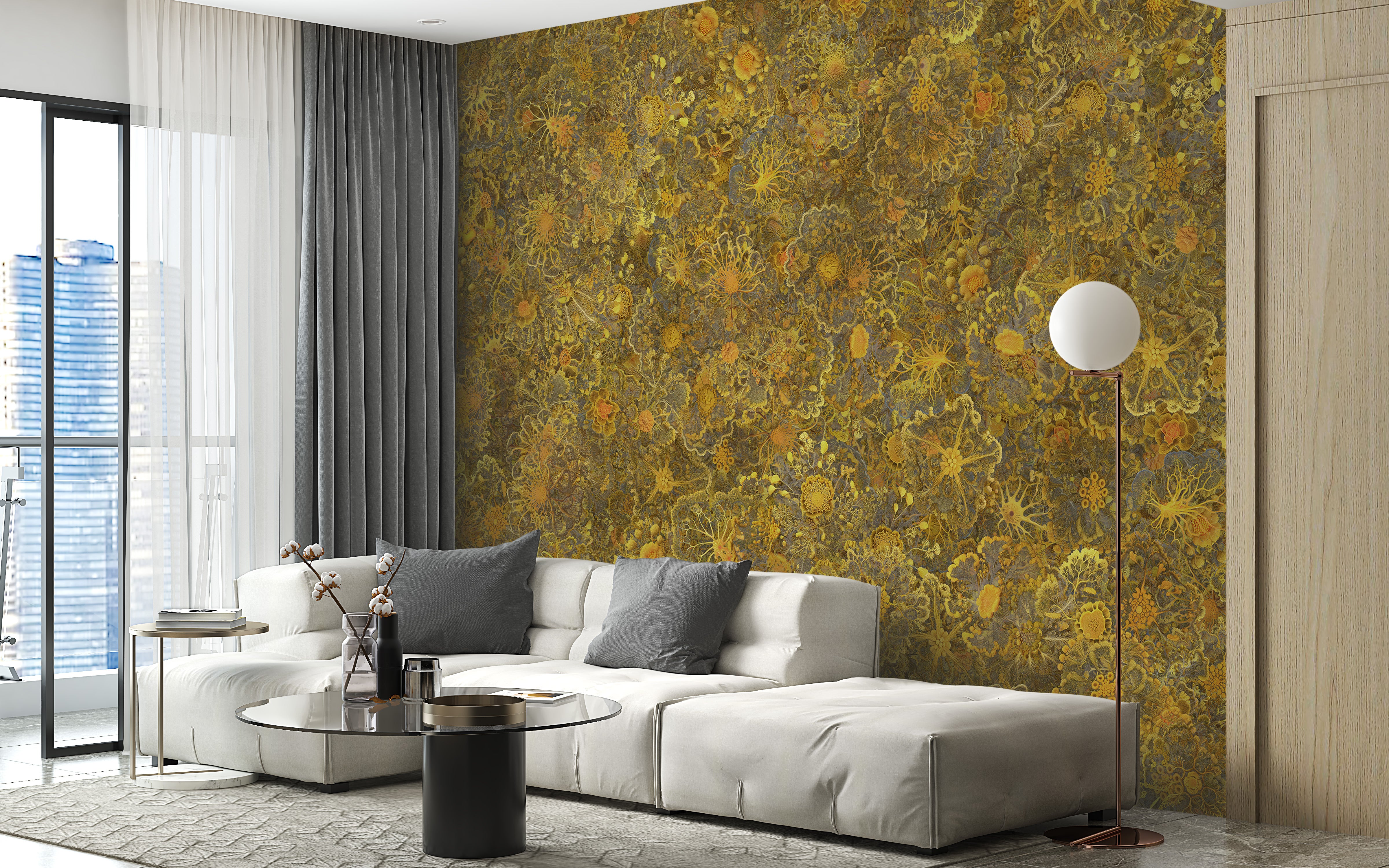 Yellow Mycelium Nature Power Embroidery Wallpaper Murals