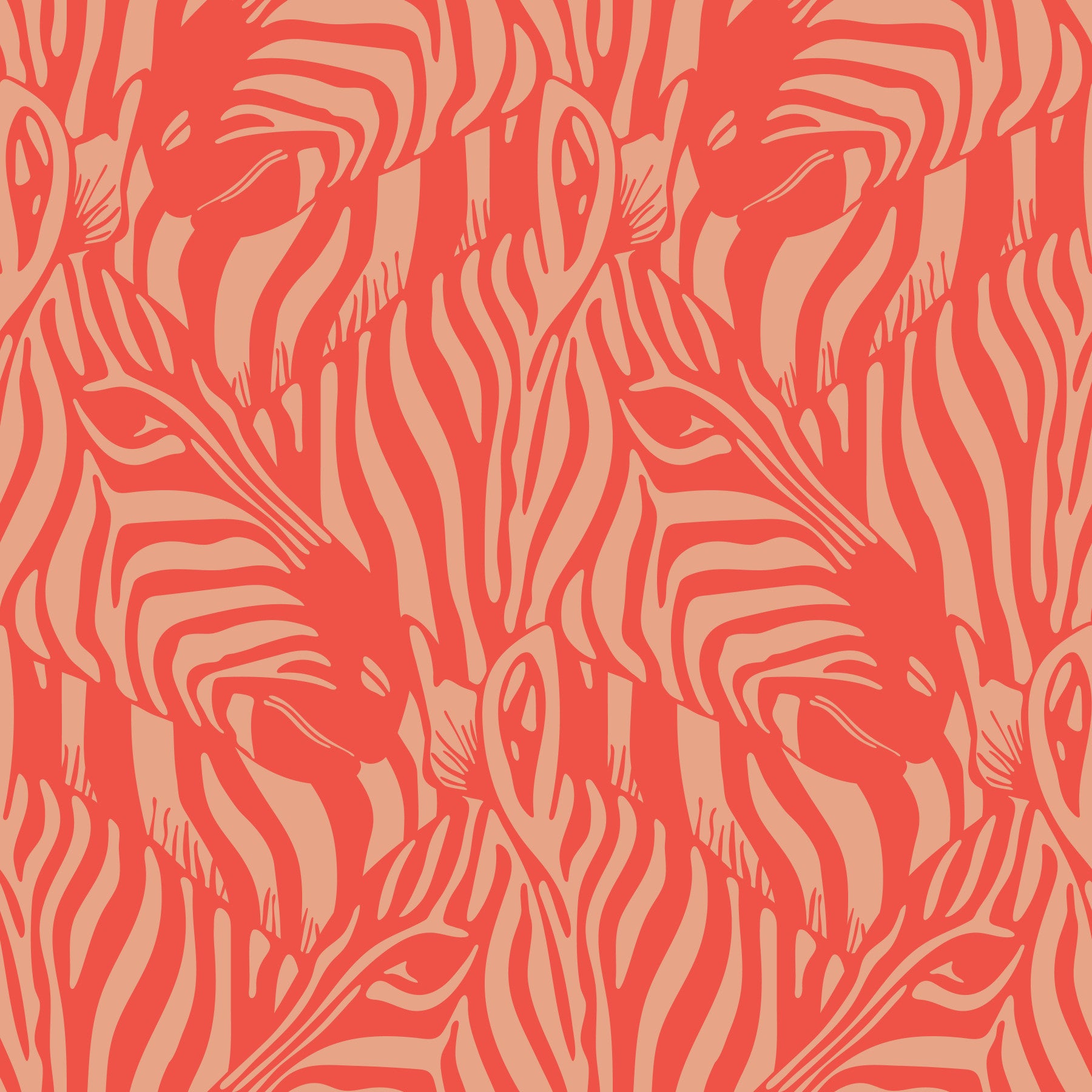 Immerse yourself in the untamed beauty of the African savanna with this captivating bright "Zebra Herd" wallpaper that features a mesmerizing pattern of interlocking zebra heads. The gorgeous warm desert colours of Red Orange and Buff create a visually stunning display that manages to be bold, graphic and wild, and elegantly warm at the same time! Perfect for adding a touch of natural sophistication to any space, this modern take on classic zebra stripe designs brings the spirit of the wild into your home. Whether you're a wildlife enthusiast or simply appreciate refined design, this wallpaper will transform your walls into a work of art. This pattern design is also available in Other Colourways too! Original wallpaper pattern design by Jackie Tahara of UnBlink Studio.