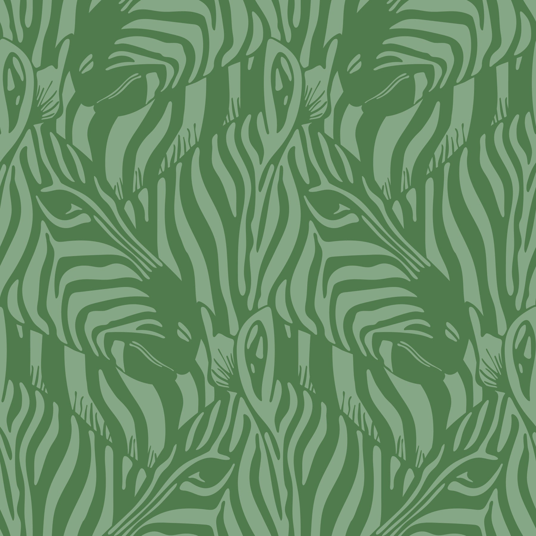 Immerse yourself in the untamed beauty of the African savanna with this captivating lush "Zebra Herd" wallpaper that features a mesmerizing pattern of interlocking zebra heads. The striking monochromatic colours of Sage Green and Pastel Green create a visually stunning display that manages to be bold, graphic and wild, and elegantly calming and lush at the same time! Perfect for adding a touch of natural sophistication to any space, this modern take on classic zebra stripe designs brings the spirit of the wild into your home. Whether you're a wildlife enthusiast or simply appreciate refined design, this wallpaper will transform your walls into a work of art. This pattern design is also available in Other Colourways too! Original wallpaper pattern design by Jackie Tahara of UnBlink Studio.